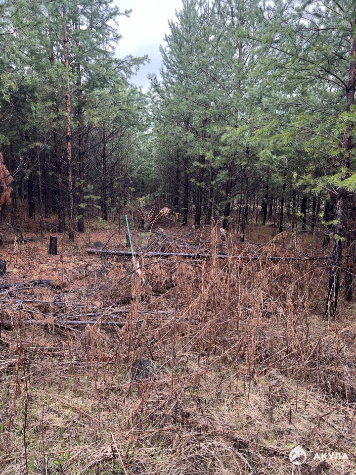 Участок ровный и сухой, размежёван, границы соответствуют координатам, на участке подрастающие сосны, вокруг лес.
