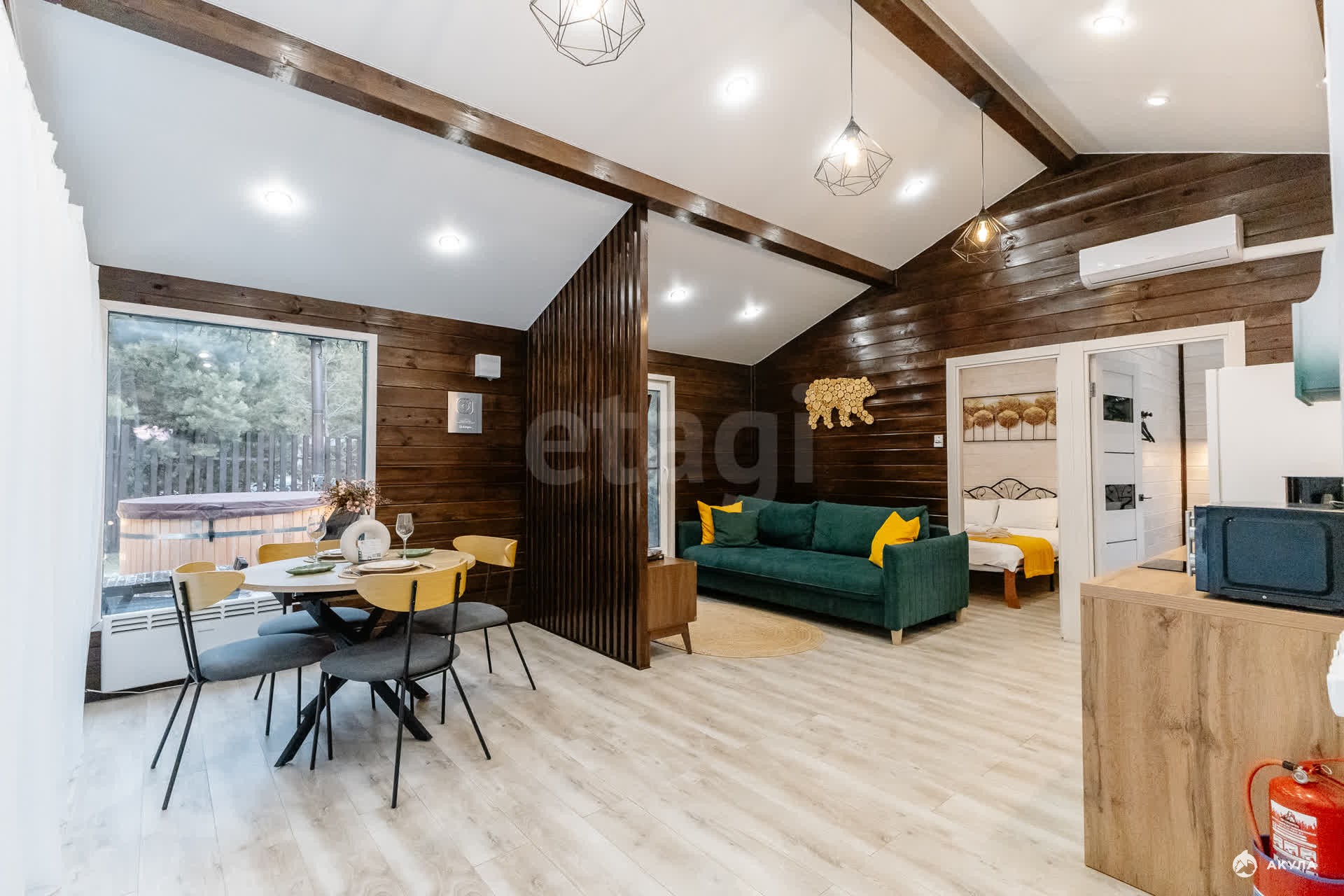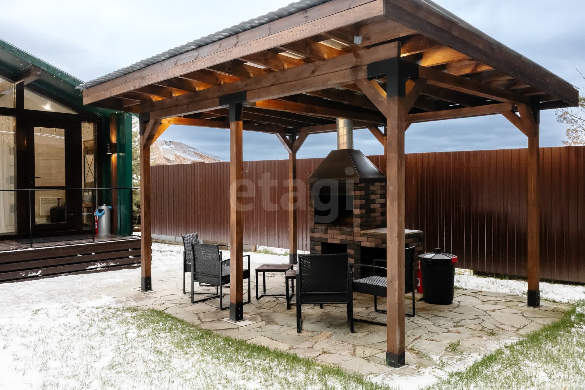 Около каждого дома установлено фурако - большая бочка с горячей водой, предназначенная для релаксации и оздоровления; беседка с мангальной зоной.