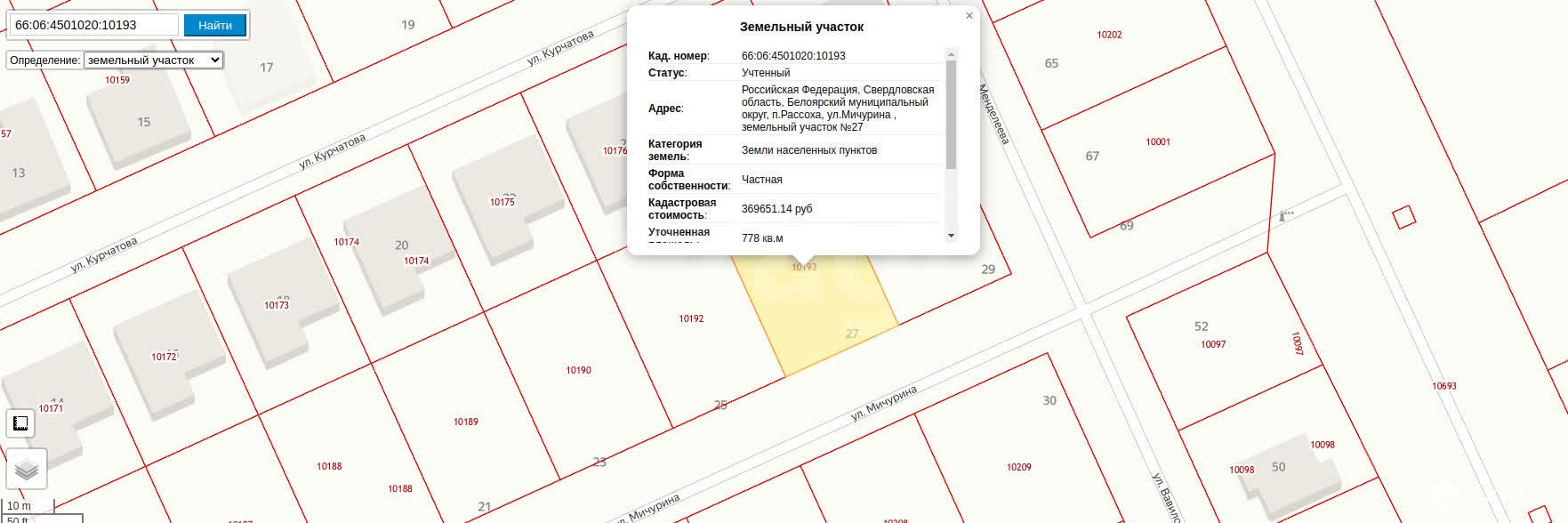 - Площадь участка