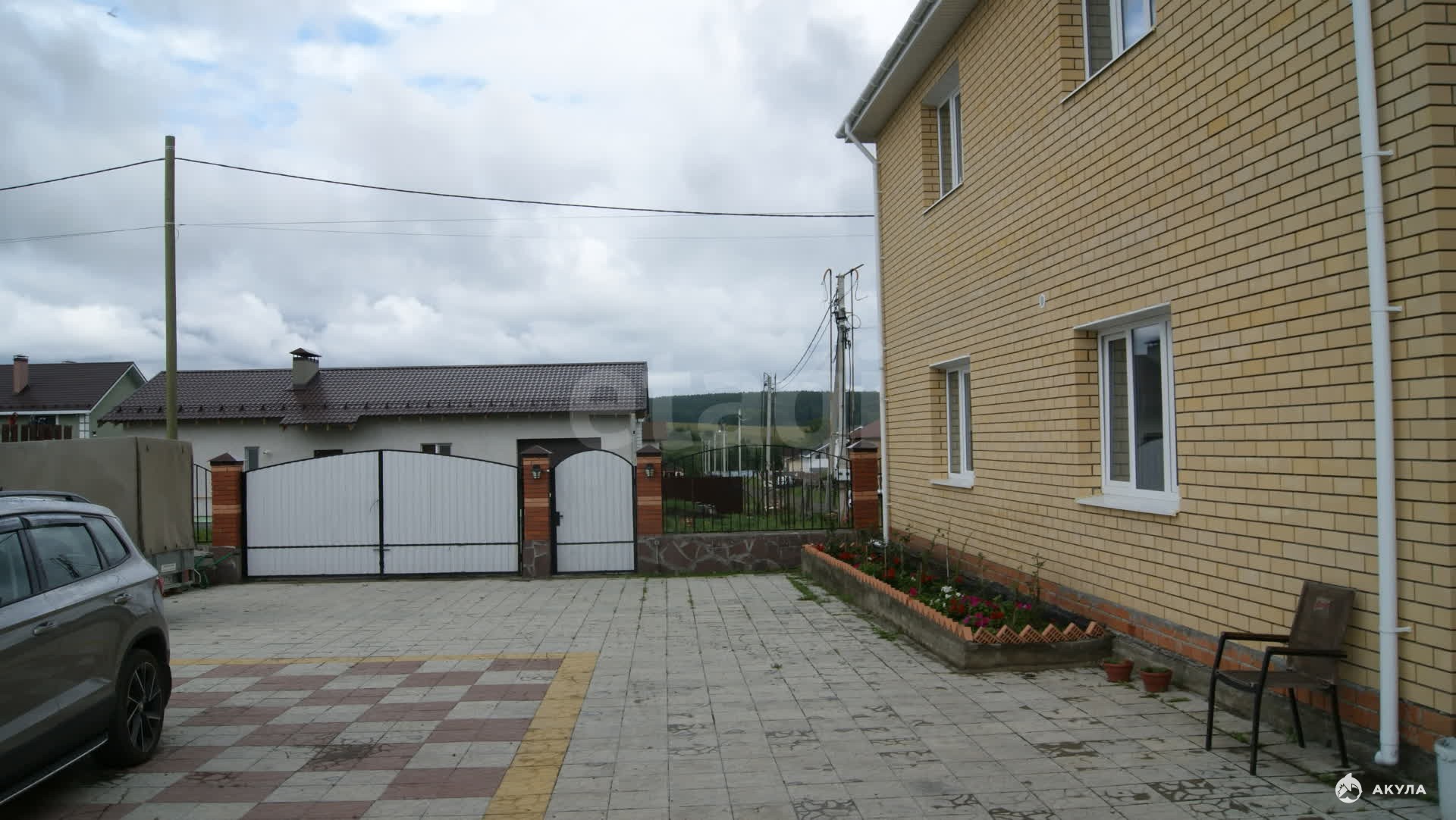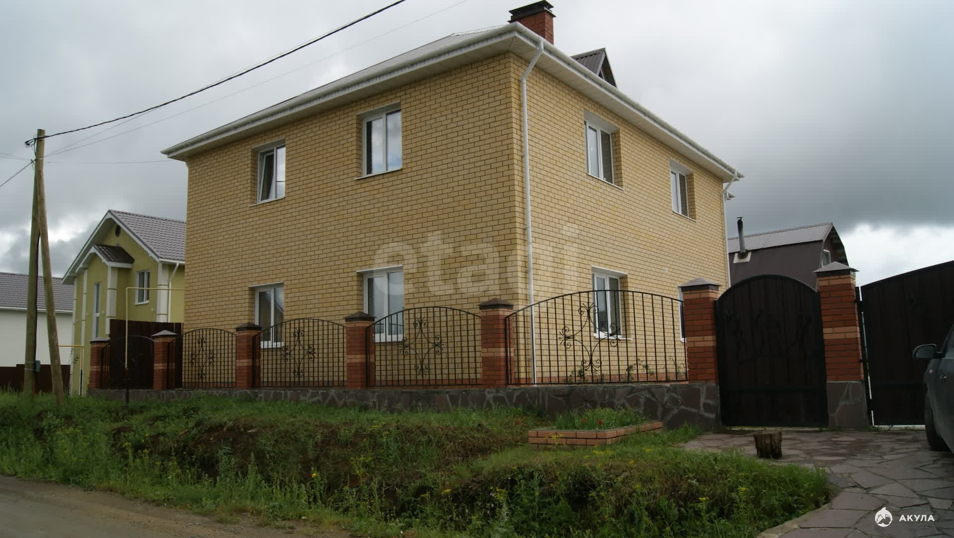 Дом общей площадью 245 кв. м, стоит на высоком месте, огорожен забором на фундаменте с входной калиткой и въездными воротами.