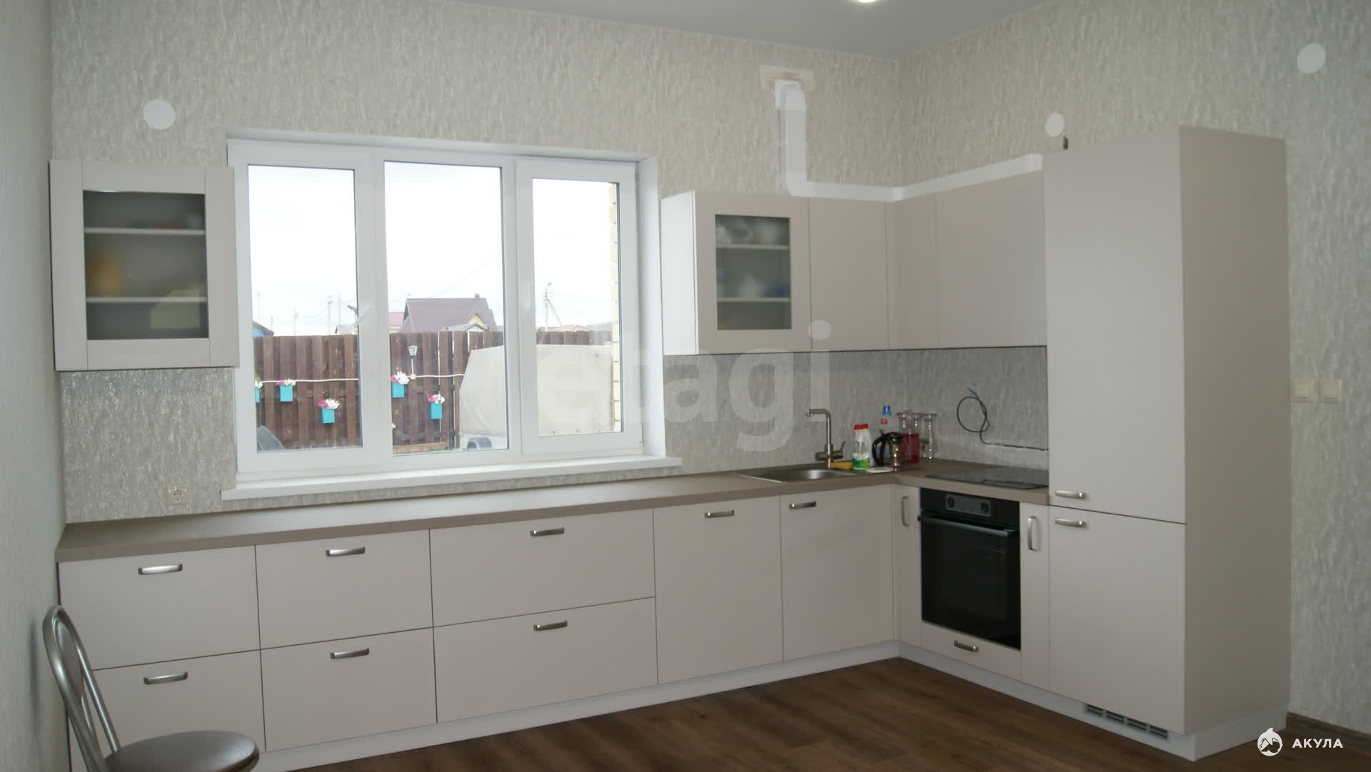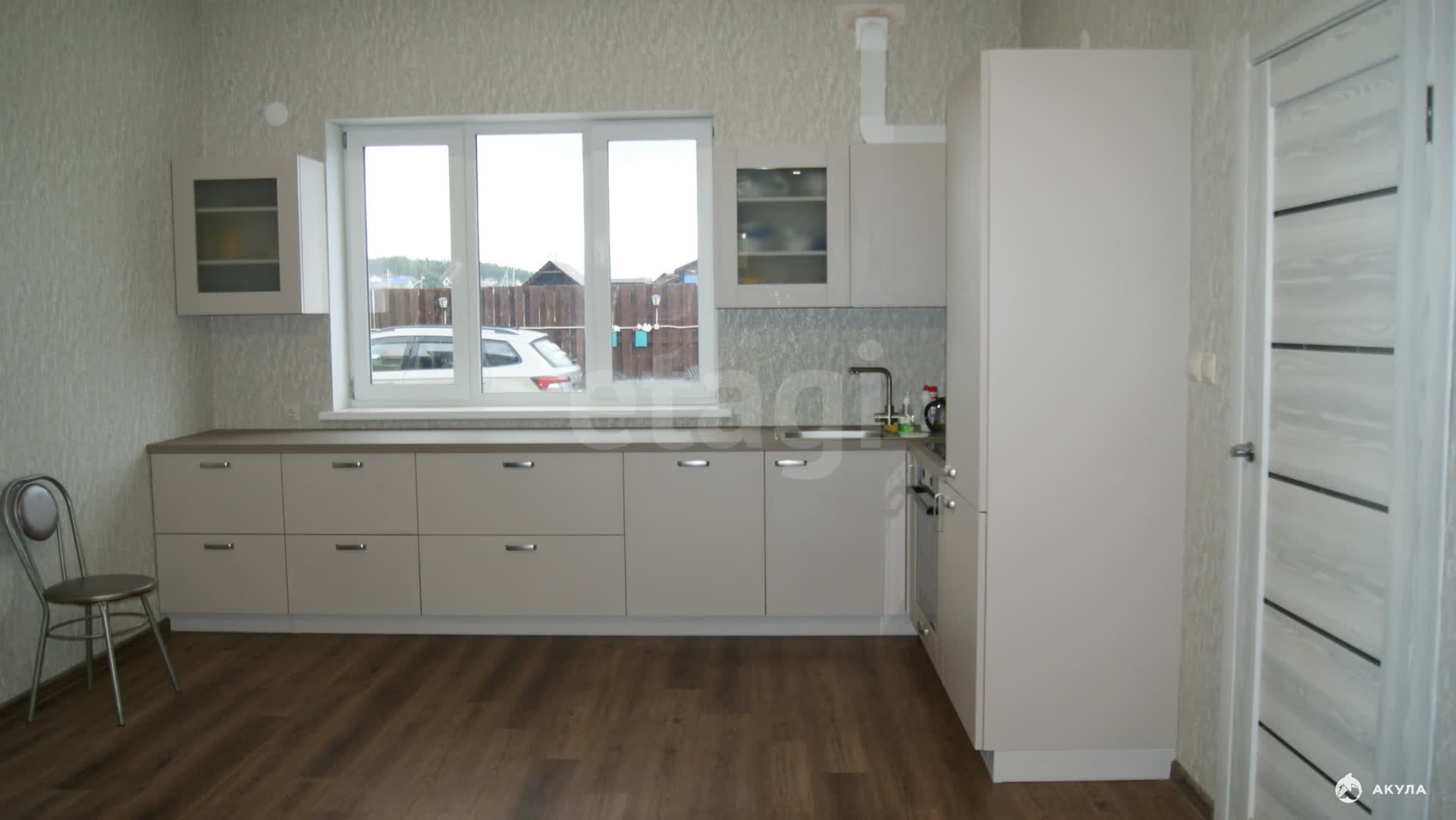 Стены - твинблок на 300, обшит облицовочным кирпичом, между ними утепление. Крыша шатровая металлочерпепица. Потолки натяжные и деревянные. Окна качественные стеклопакеты. Полы — кварцвинил и ламинат. Двери: входная -сейф дверь, межкомнатные -филенчатые.