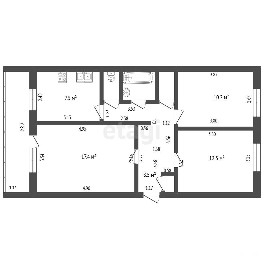 Выполнен косметический ремонт, стены выровнены, установлены пластиковые окна и межкомнатные двери.