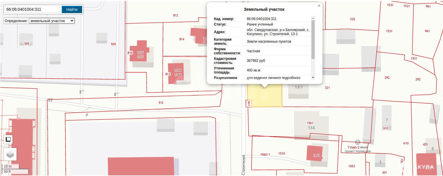 - Площадь участка