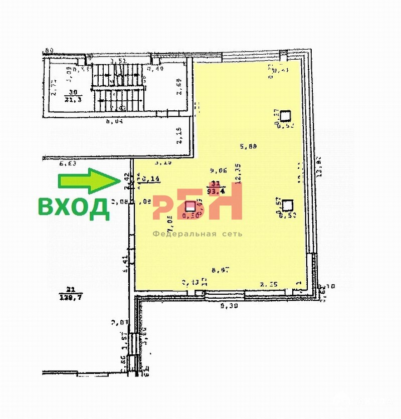 - общая площадь помещения - 93, 4 кв.м;