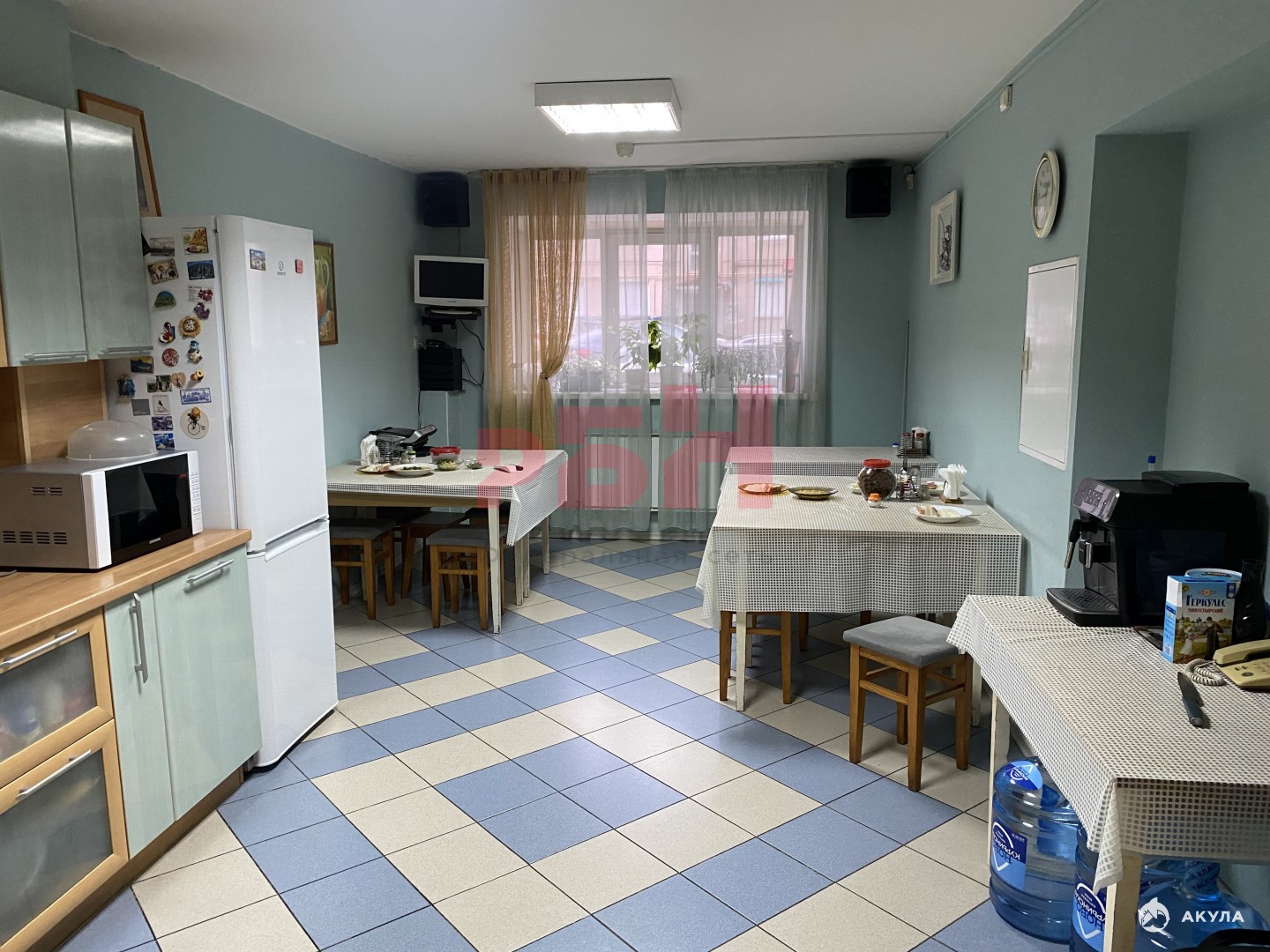- офис чистый, уютный, общая площадь 61.8 кв.м (2 кабинета 31.9м2+29.9м2). Есть хорошо оборудованная столовая комната, которой арендатор может пользоваться бесплатно. Так же есть приходящий повар;
