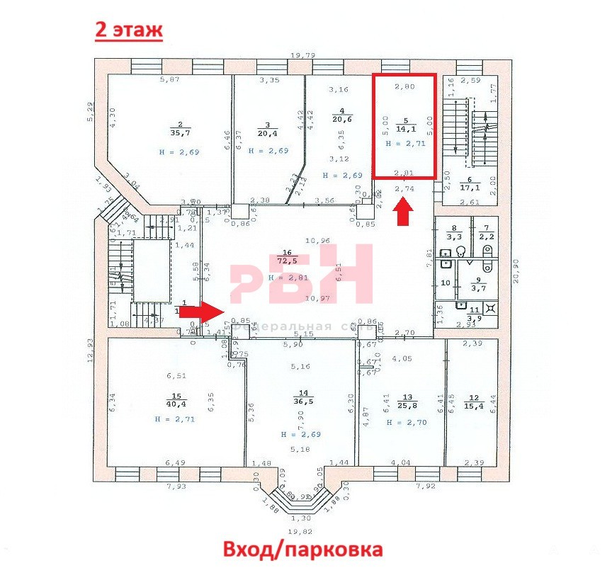 - общая площадь 14, 1 кв.м;