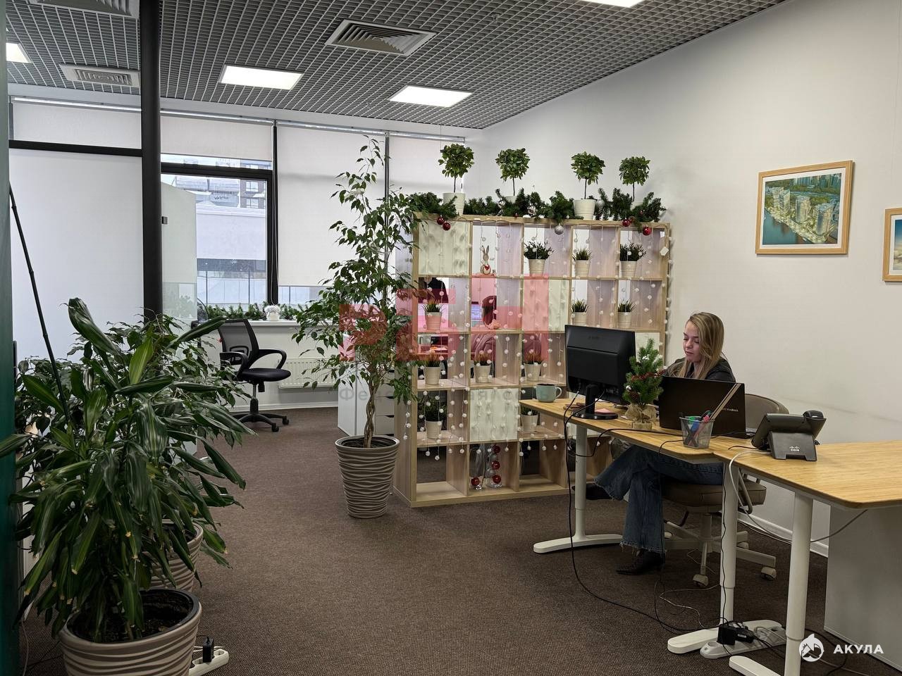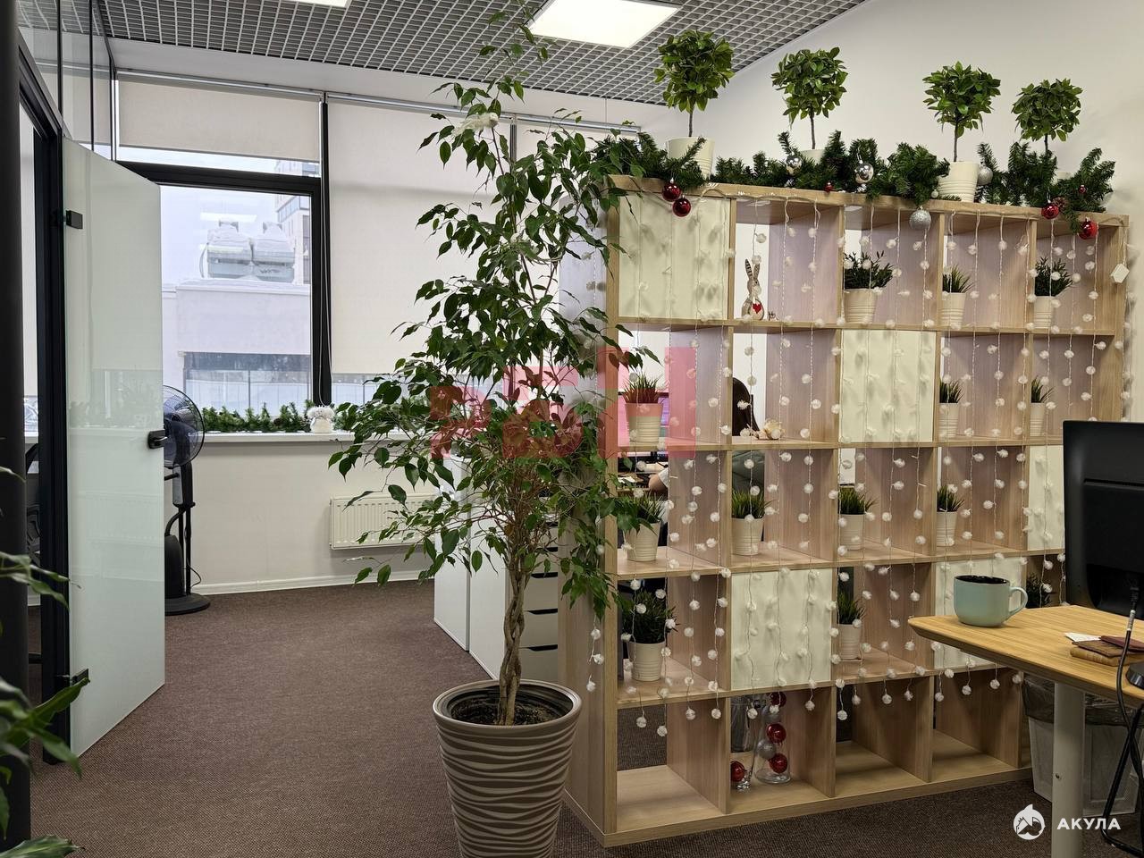 - Помещение с дизайнерским проектом, оборудовано современной мебелью на 7 рабочих мест, площадь офиса разграничена стеллажами;