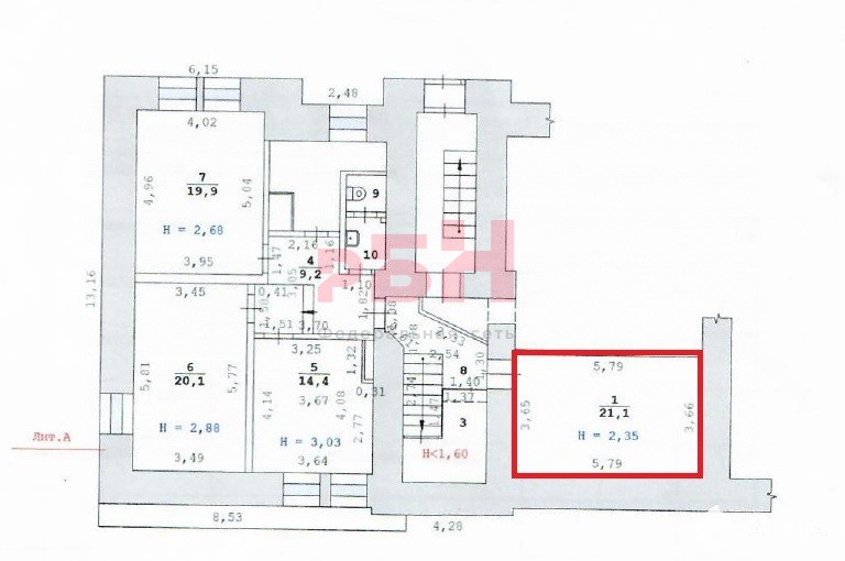 - Помещение на цокольном этаже;