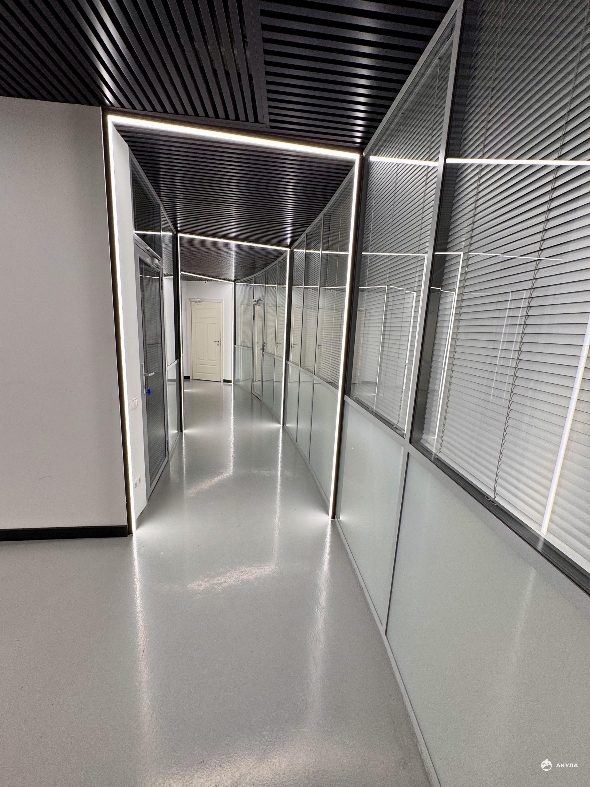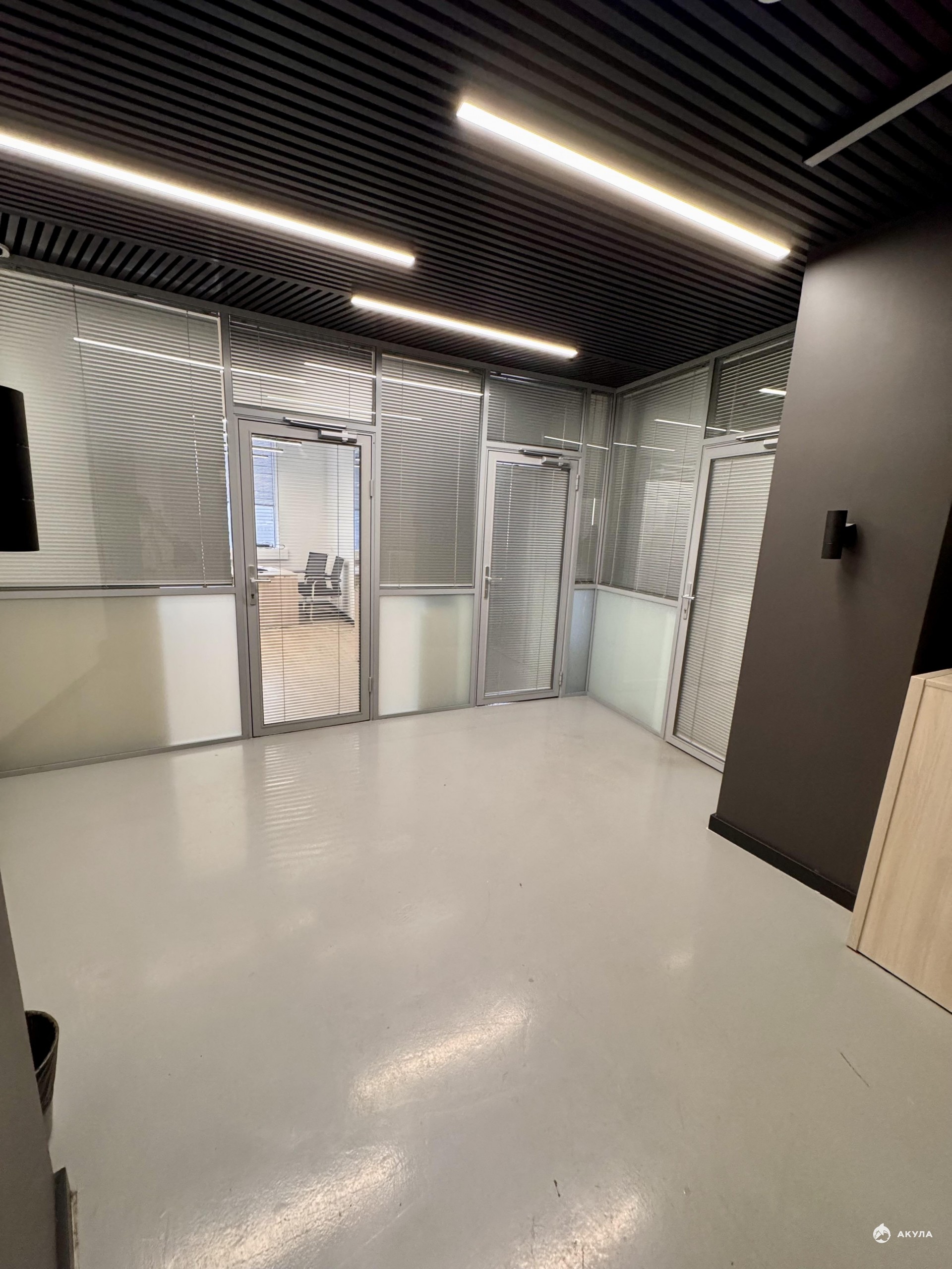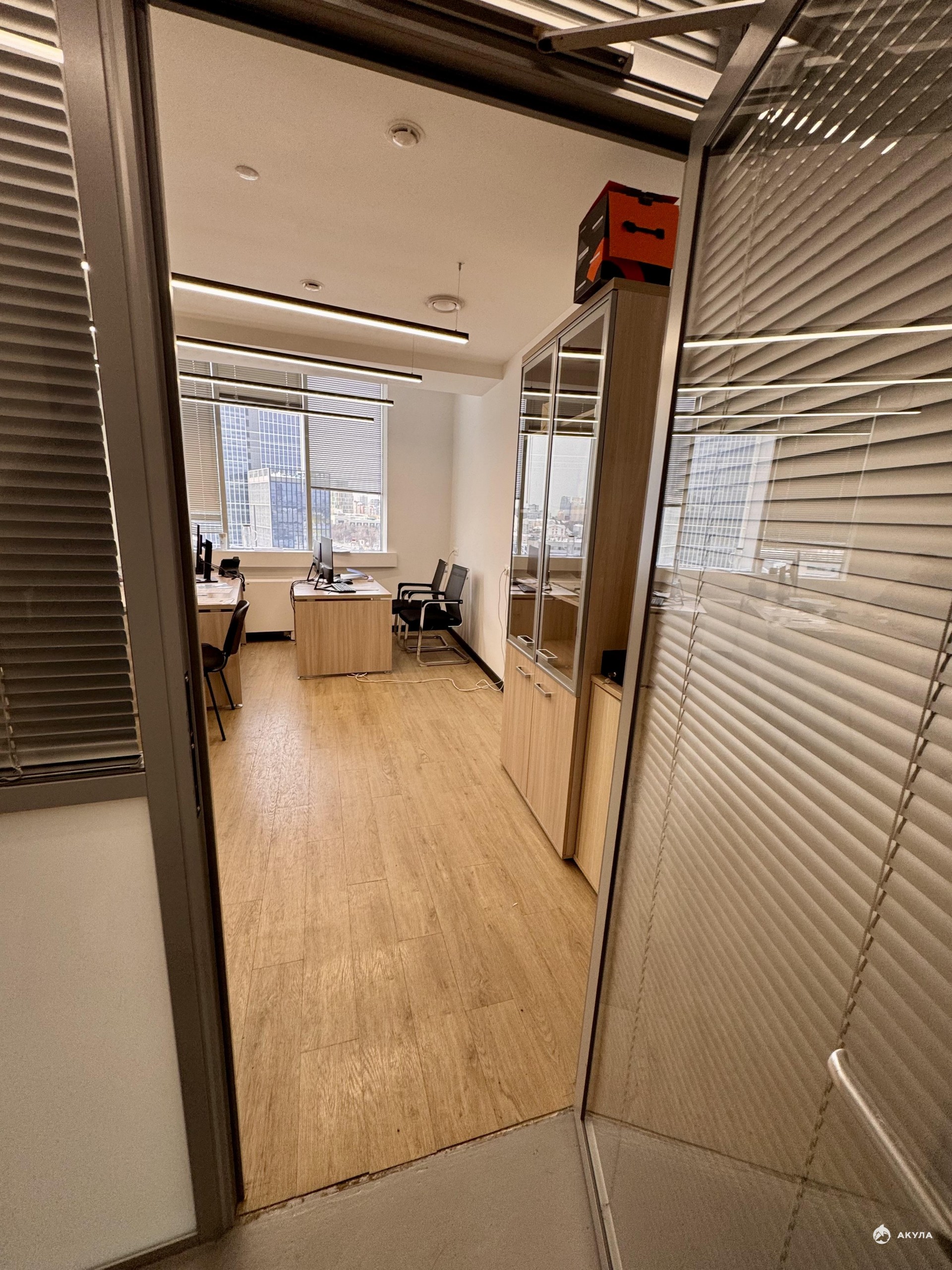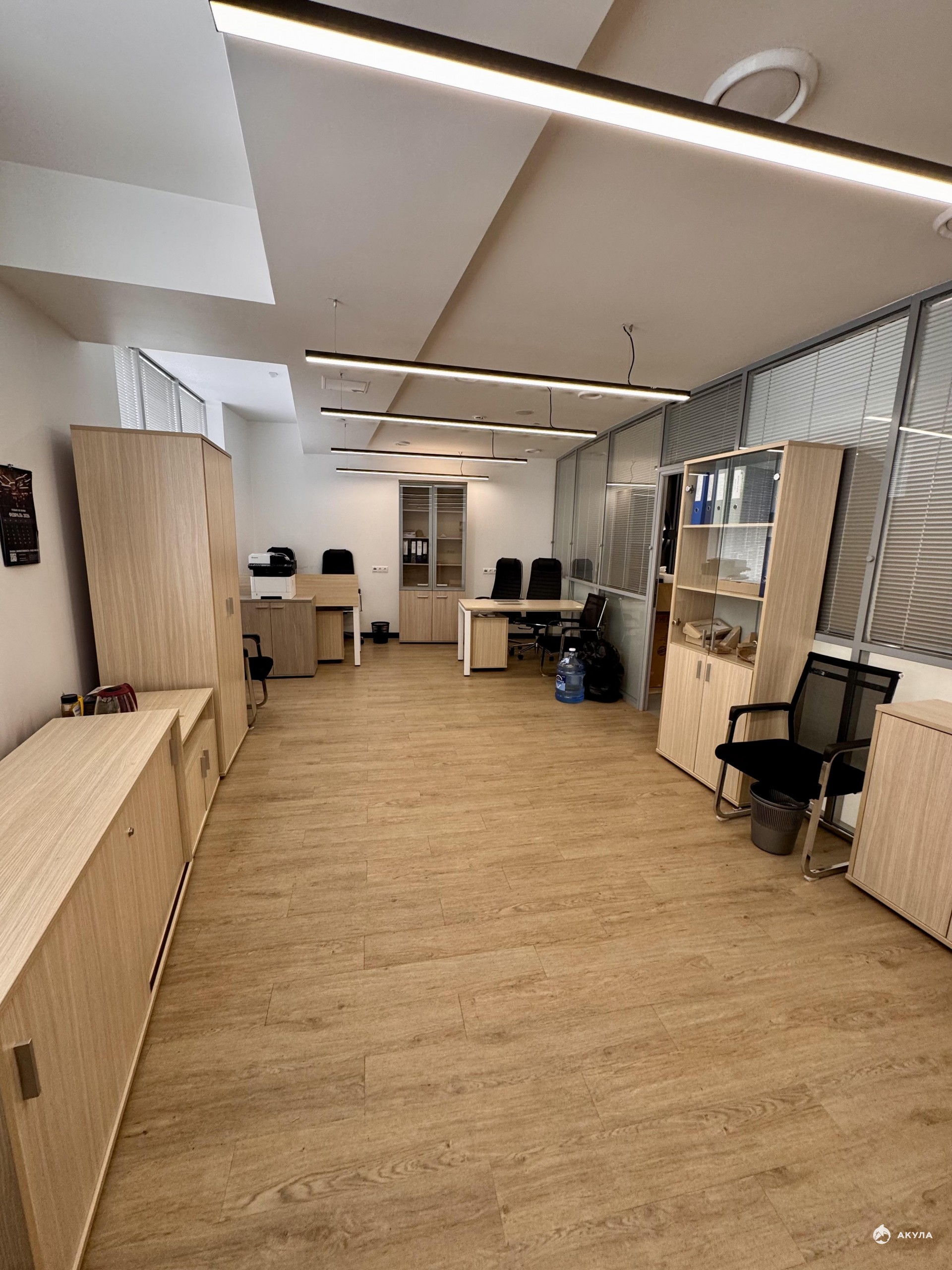Офисное помещение разделено на 5 кабинетов + серверная + комната для приема пищи с мокрой точкой.