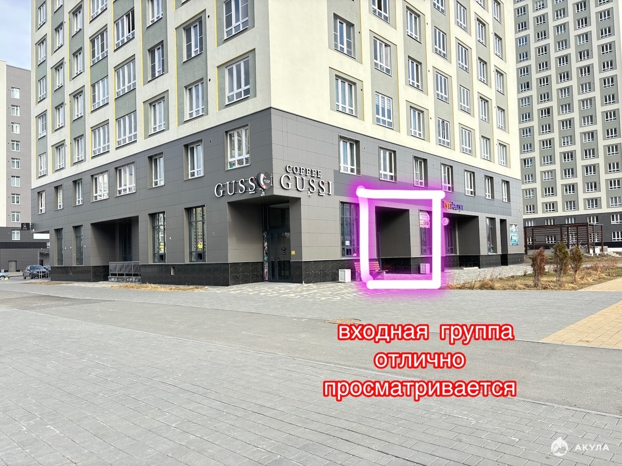 -с двух сторон от помещения проходят пешеходные/прогулочные/вело аллеи - постоянный трафик из потенциальных клиентов; также рядом - мост, соединяющий другие ЖК с данной локацией