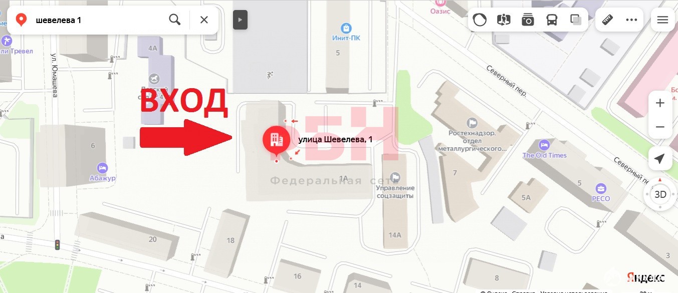 - помещение расположено в Верх-Исетском районе, вблизи от пересечении улиц Шевелёва – переулок Северный;