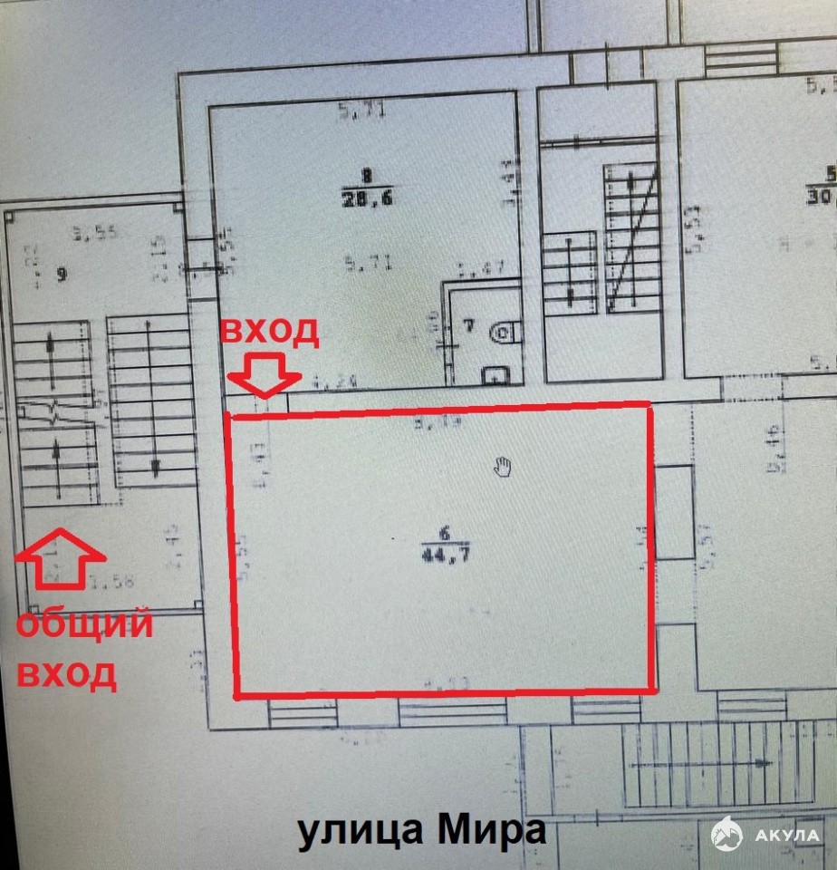 Торгово-офисное помещение 44, 7 м2 в жилом доме, 1 этаж. Под: магазин, бьюти, салон красоты, офис, склад. Высота потолков 2, 8 метра. Мощность 10 кВт. 3 окна с жалюзи. Вход общий (через арендатора "Табак №1"). Просторный торговый зал 44, 7м2, санузел на этаже. Наземная парковка на 10 м/мест. Место для вывески. Густонаселенный район (рядом ЖК «Проспект Мира»).ЛОКАЦИЯ: остановка транспорта Педагогическая, УралобувьАктивный автомобильный трафик по ул. МираАктивный пешеходный трафикСоседи: автомагазин, ПВЗ, продуктыХАРАКТЕРИСТИКА ОБЪЕКТА:Общая площадь – 44, 7 м2, 1 этажВозможность размещения рекламы на фасадеЭлектрическая мощность 10 кВтПотолки высотой 2, 8 мОхранно-пожарная сигнализацияСанузел на этажеКондиционерОТДЕЛКА: пол -плитка, стены – под покраску, потолок – АрмстронгДОПОЛНИТЕЛЬНАЯ ИНФОРМАЦИЯ:Обеспечительный платеж в размере одного месячного платежаКоммунальные платежи оплачиваются дополнительноСубаренда, арендатор - Табак N1Без дополнительной комиссии для субарендатора