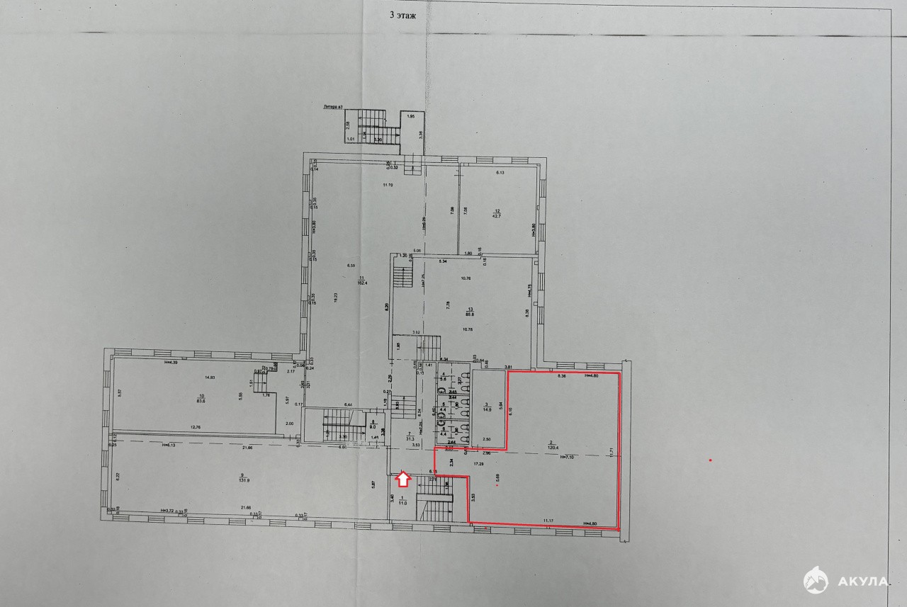 Светлое и просторное помещение под мелкое производство, швейное производство, услуги, склад, на 3 этаже административного здания. Высота потолков -7 метров. На этаже грузоподъемник - до 500 кг. Общий вход. Наземная парковка. Транспортная доступность. Здание под охраной. ХАРАКТЕРИСТИКА ОБЪЕКТА:3 этаж/3 этажей, общая площадь 120.4 кв.м Помещение свободной планировки, возможно зонированиеЭлектрическая мощность 20 кВтВысокие потолки - 7, 1 метров Охранно-пожарная сигнализацияСанузлы на этаже (возможность проведения мокрой точки в помещение)Вход общийЛОКАЦИЯ: остановка транспорта КраснофлотцевАвтомобильный трафик по ул. Старых Большевиков, Шефская, Фронтовых бригад.ДОПОЛНИТЕЛЬНАЯ ИНФОРМАЦИЯ: Арендная ставка – 700р. в месяц за м2 (отопление включено в стоимость арендной ставки)Коммунальные платежи (электричество) оплачиваются дополнительноОбеспечительный платеж в размере одного месячного платежа