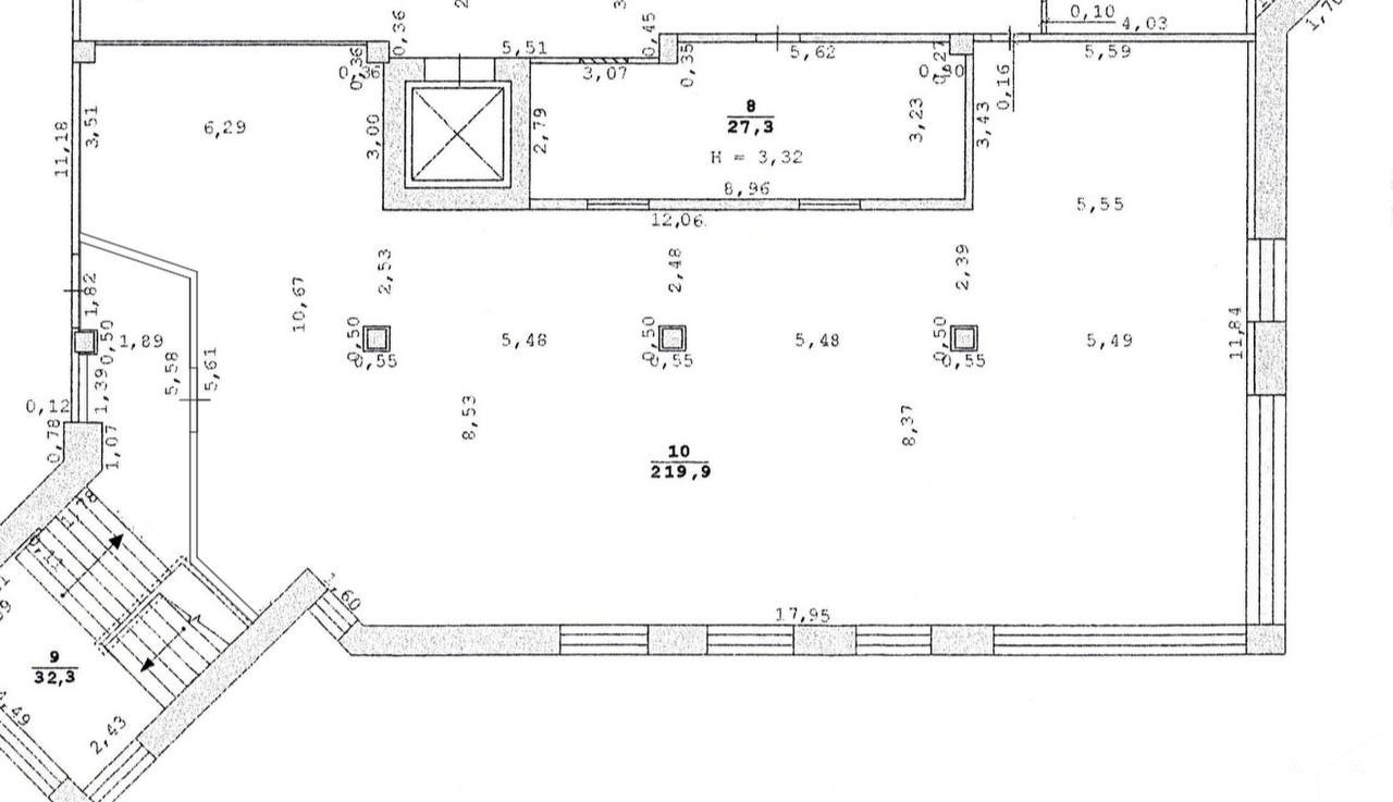 Потолки высотой 3.32 м.