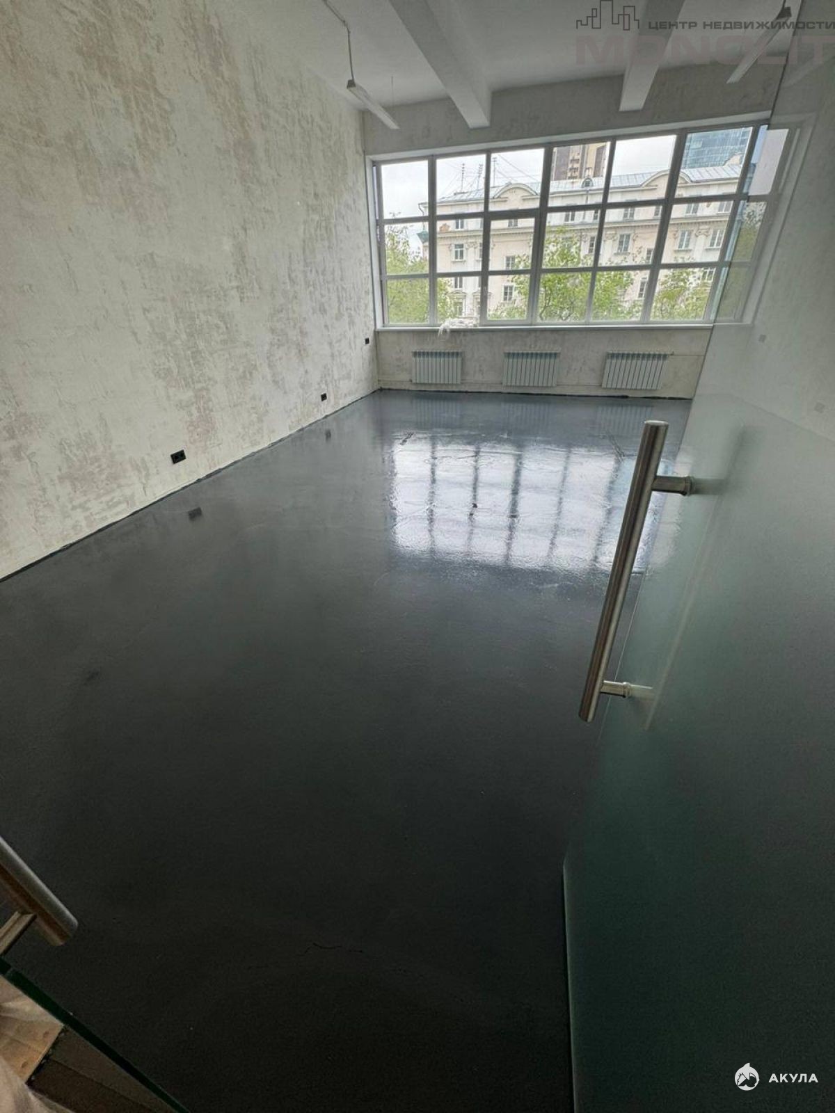 На полу стяжка +серая краска.