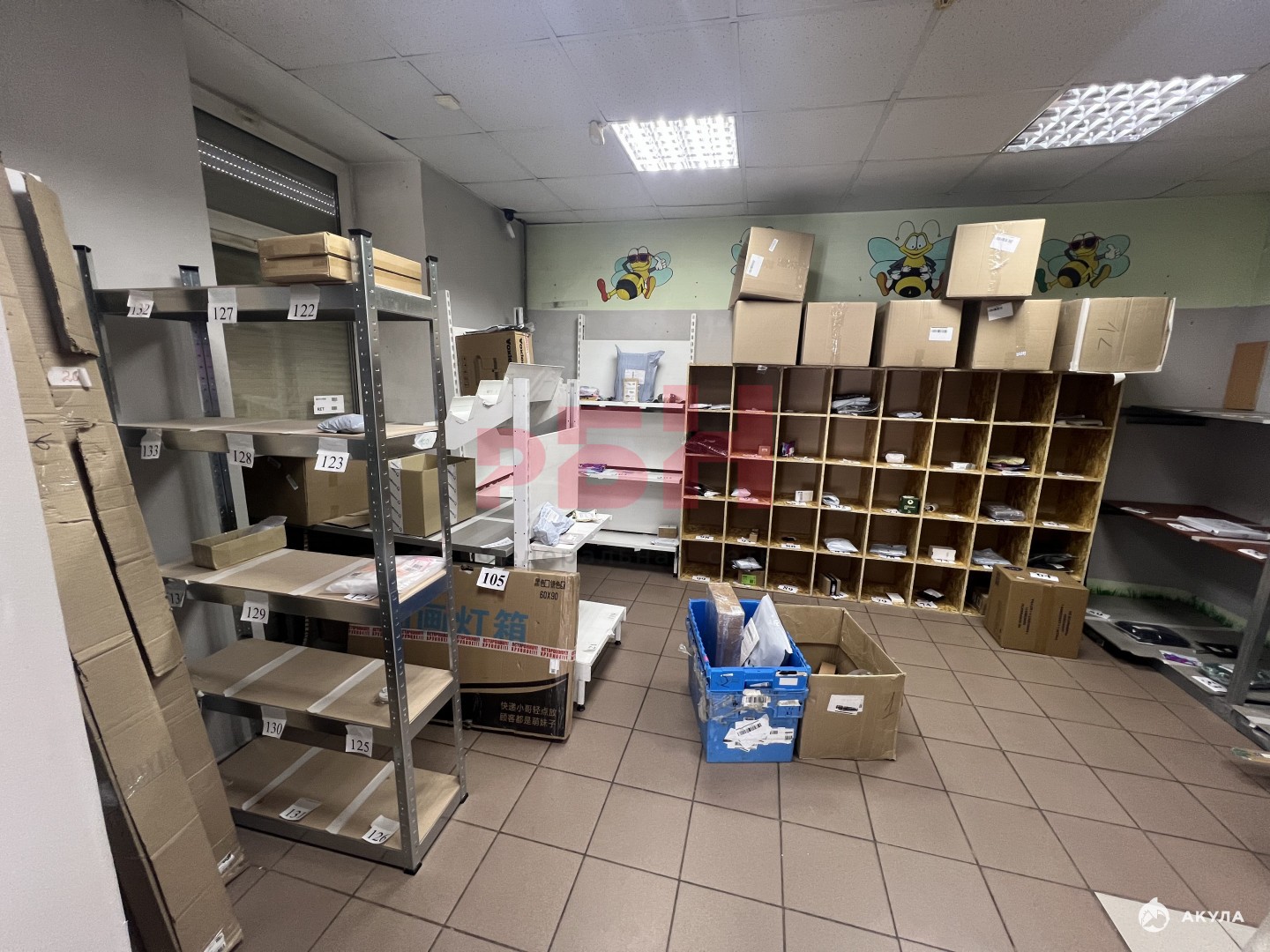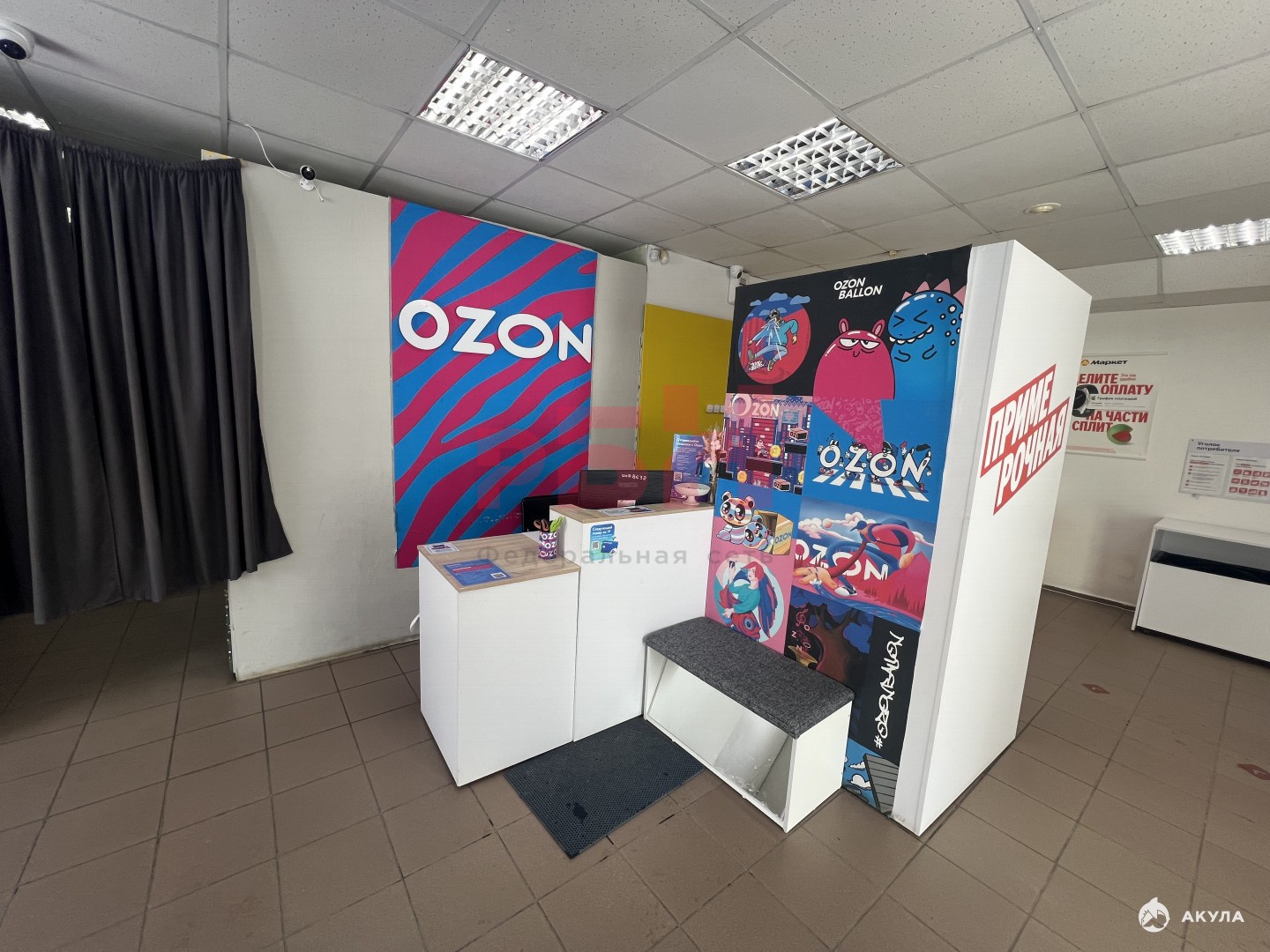 - Пол плитка, потолок армстронг