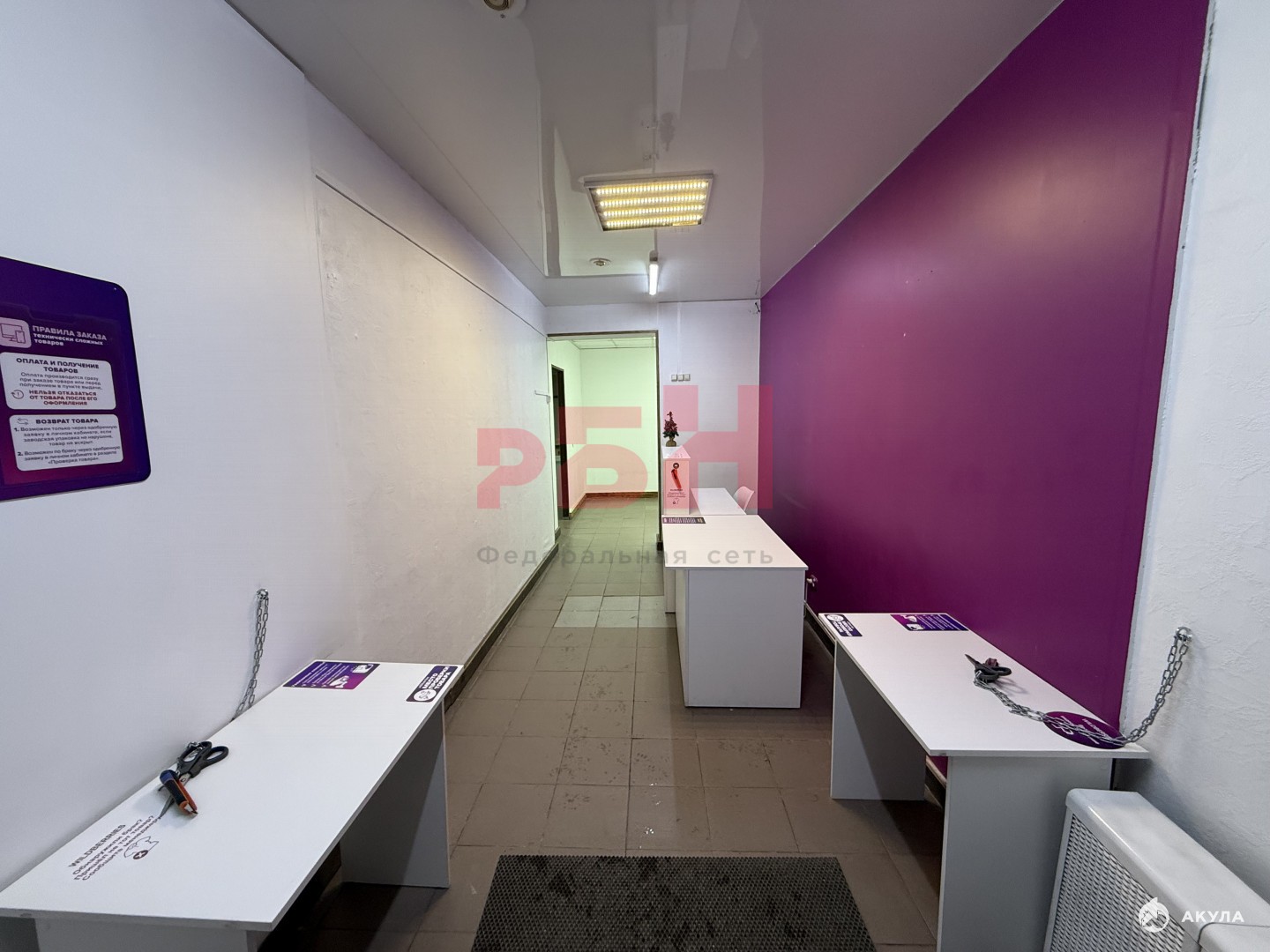 - Пол- плитка, потолок- армстронг