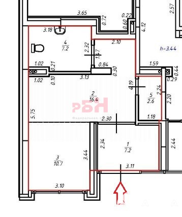 - Общая площадь 44.1 кв.м;