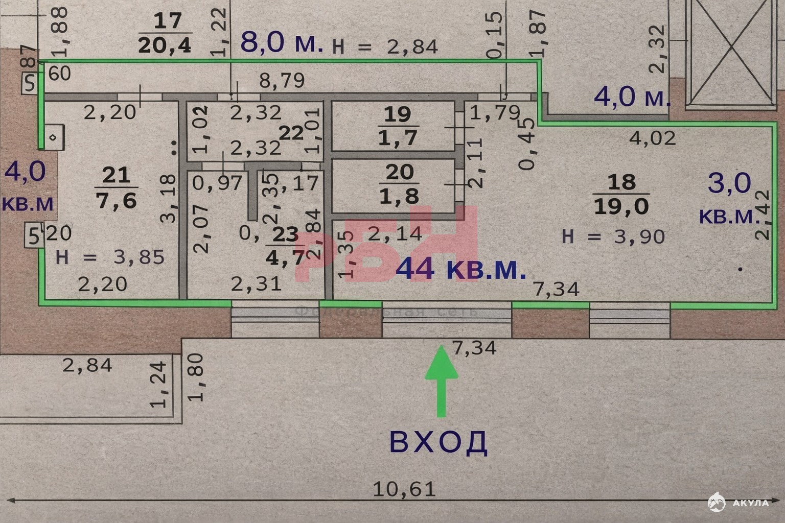 - 44 м²