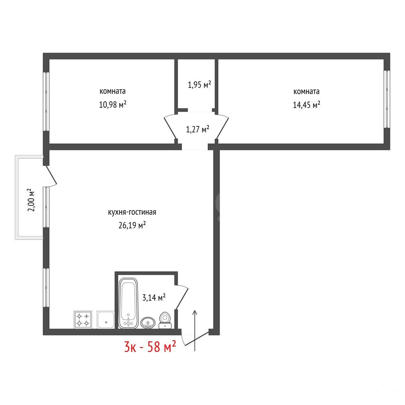 - 58 м²