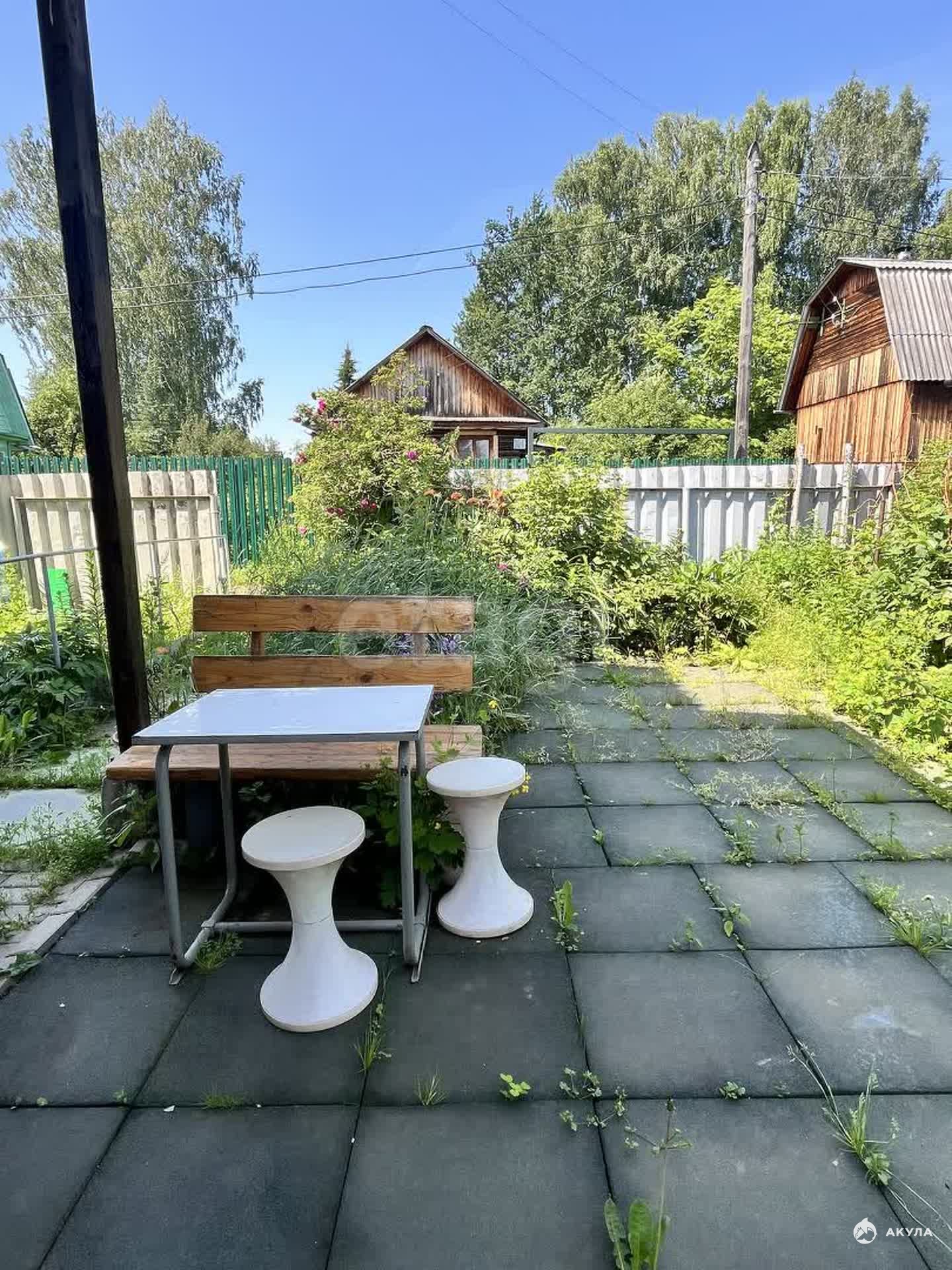 На участке сарай для дров и инвентаря, теплица, летний душ.