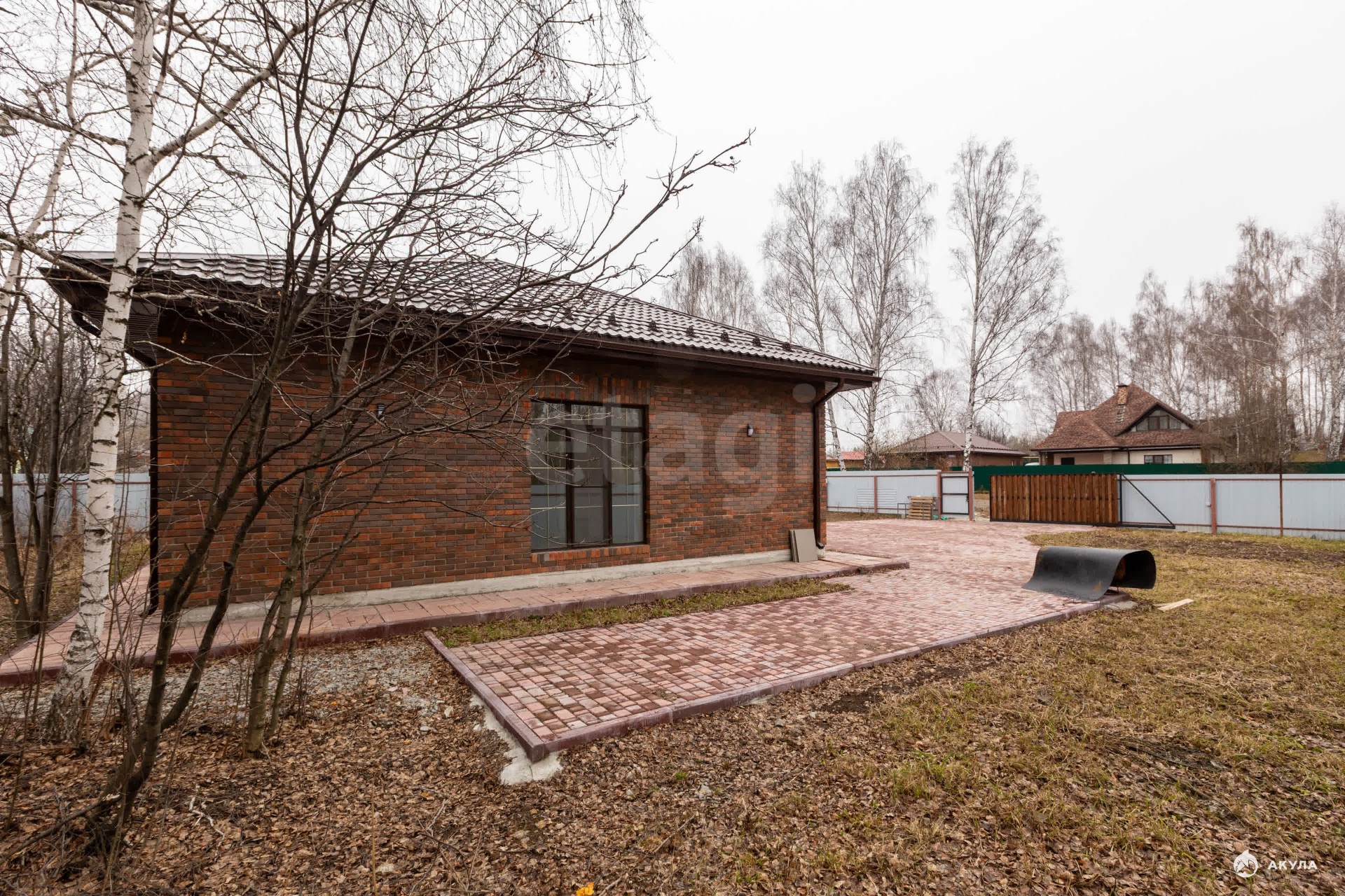 Внутри дома выполнена частичная отделка: выровнены стены, на полу керамогранит, потолки из гипсокартона. Отмостка на улице облицована плиткой.