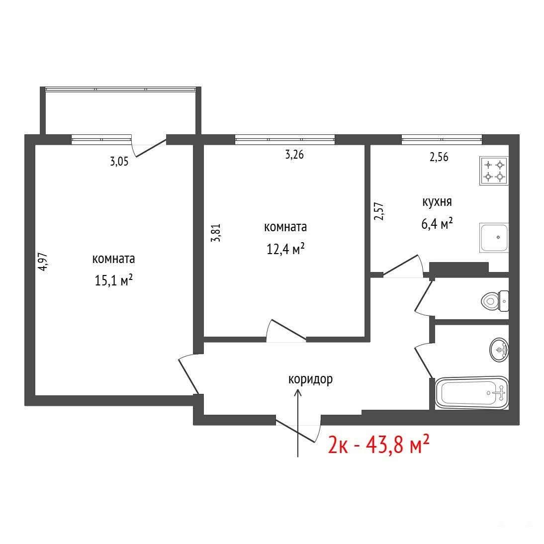 Планировка: две жилые комнаты, кухня, санузел, застеклённый балкон.
