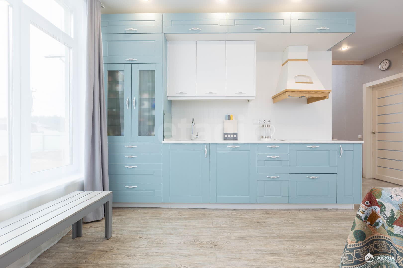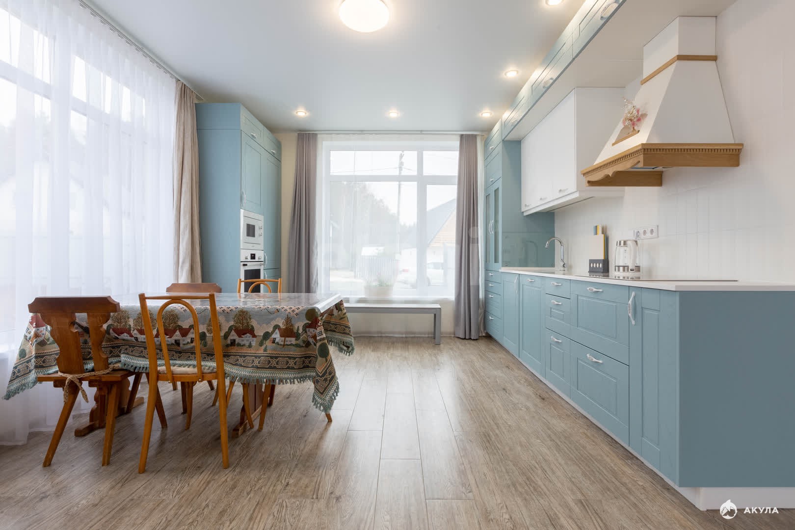 - просторная кухня гостинная 33 кв.м с выходом на террасу 30 кв.м, установлены огромные панорамные окна, которые делают кухню- гостиную более уютной