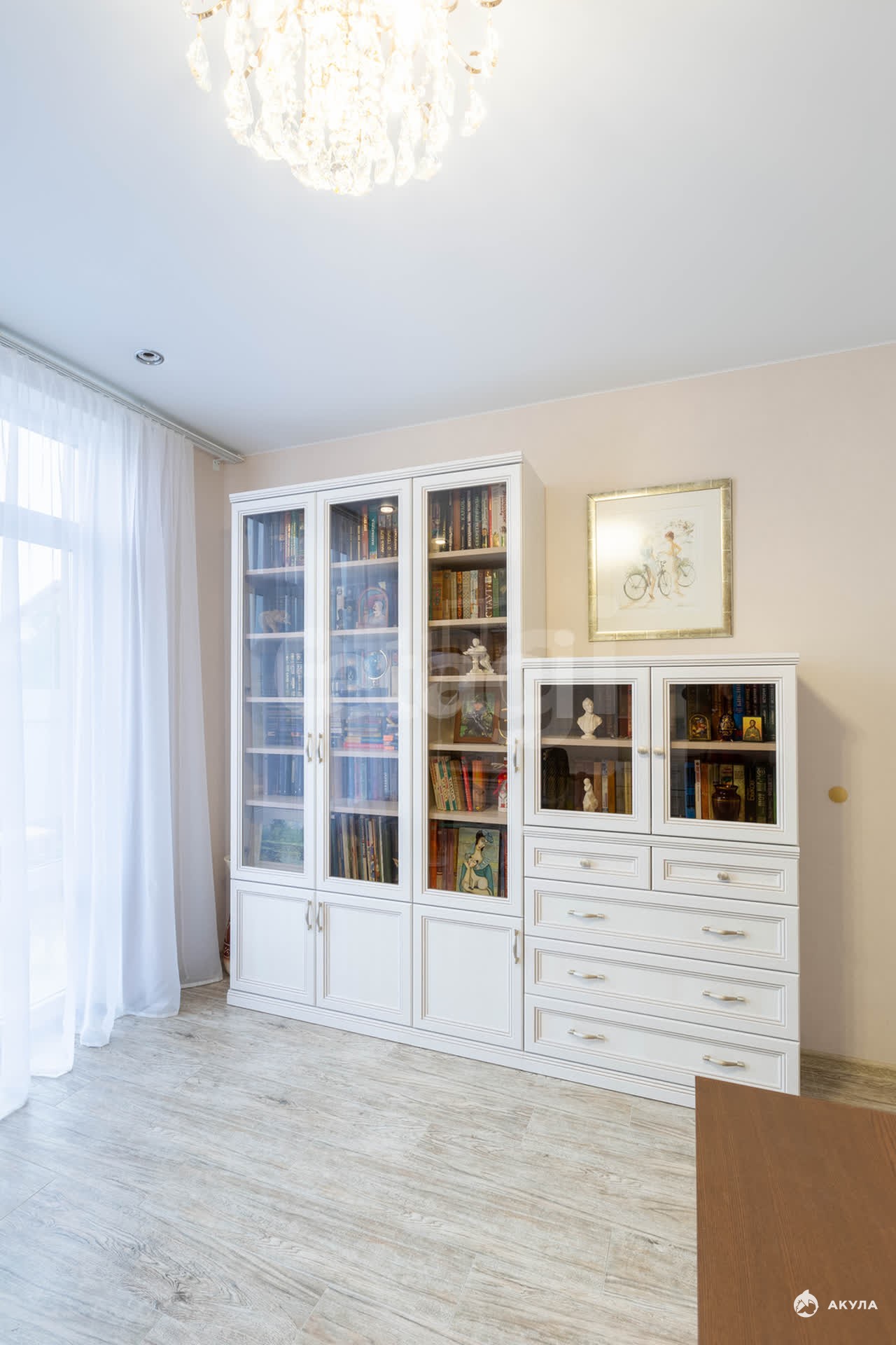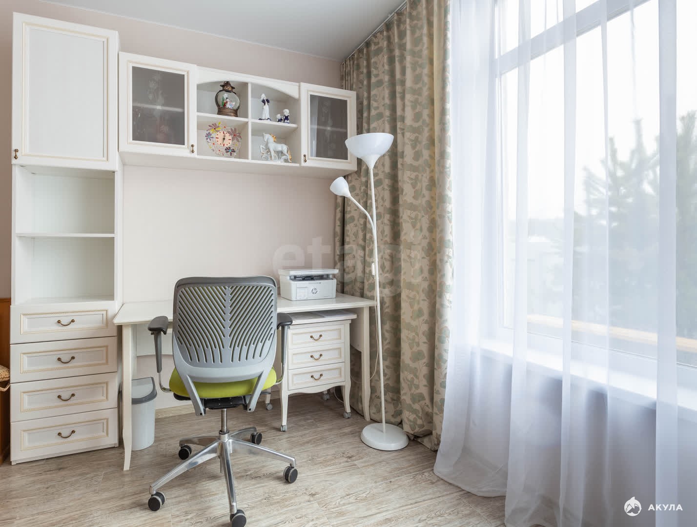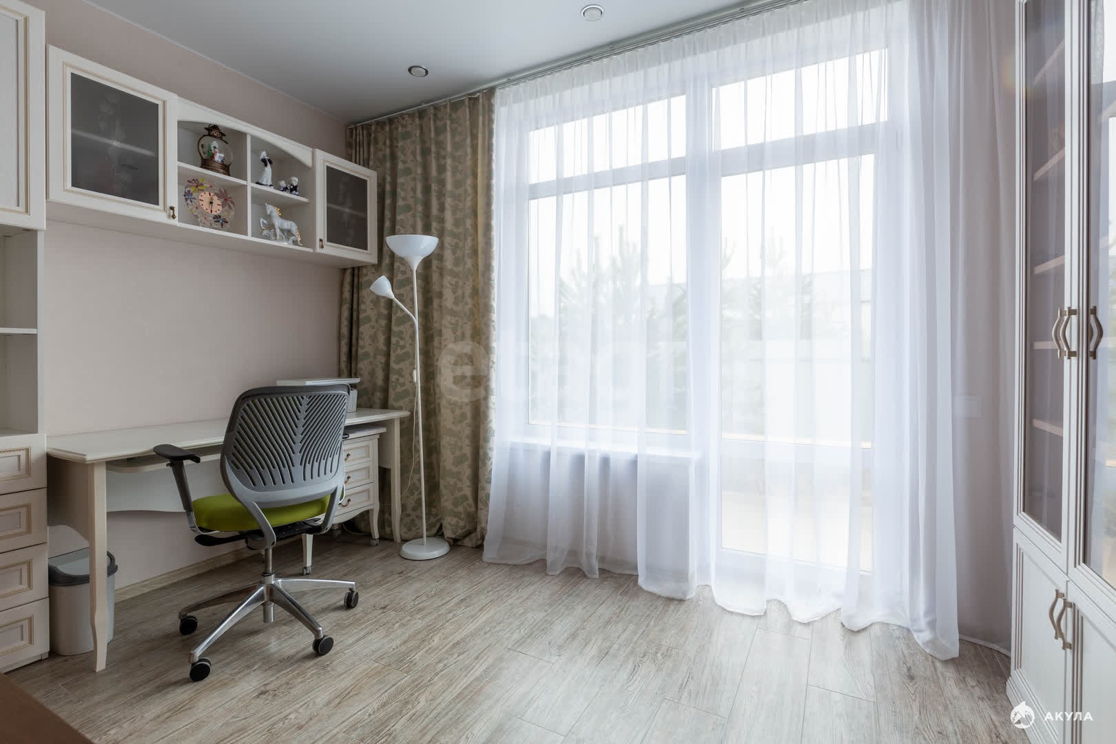 В доме большая кухня-гостиная, кабинет гостевая и 3 спальни.