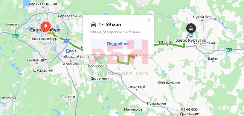 - В 19 км от места «Уральский Марс»