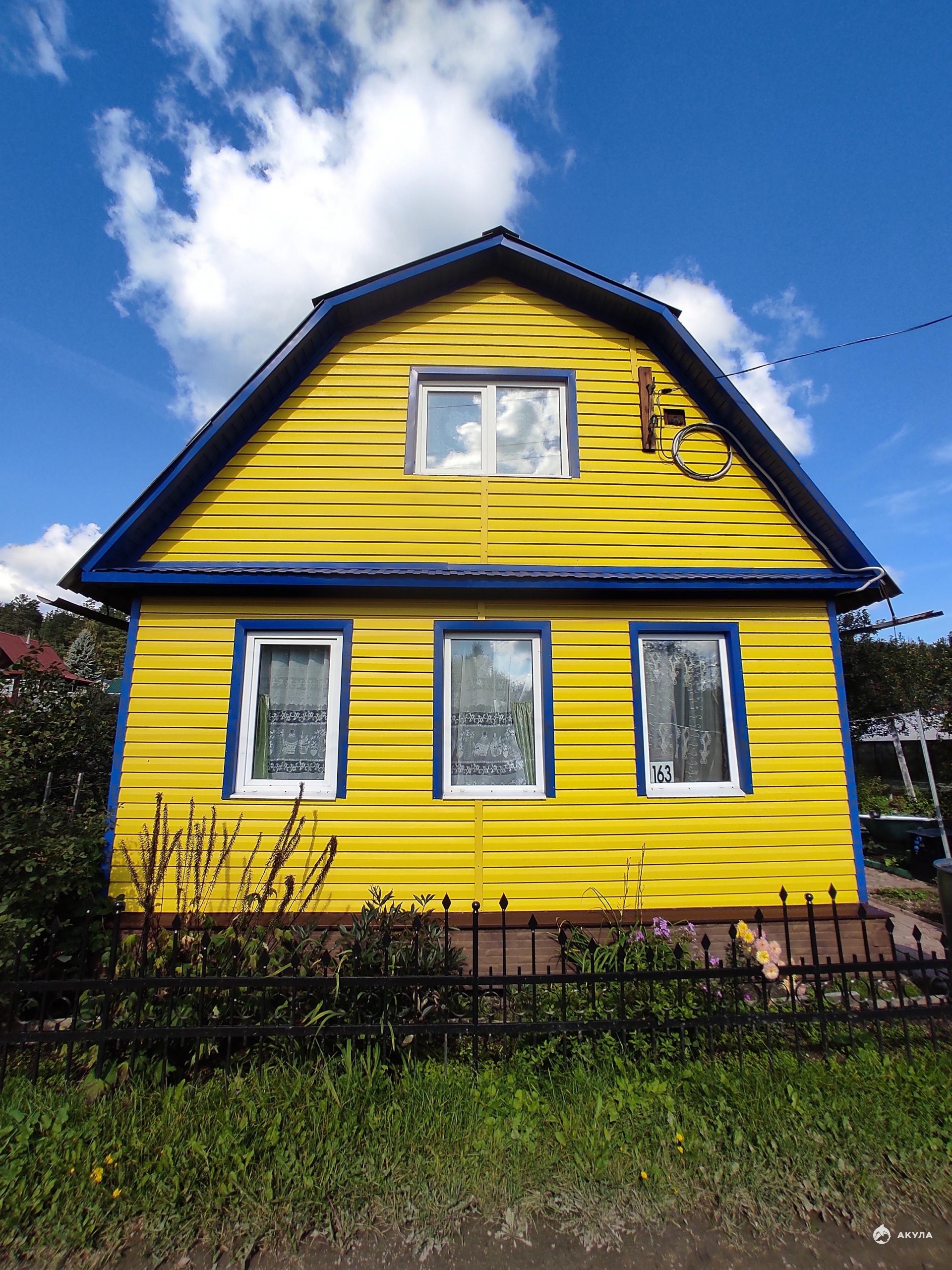 - Планировка (фото в галерее): кухня, две комнаты на первом этаже и одна комната на втором.