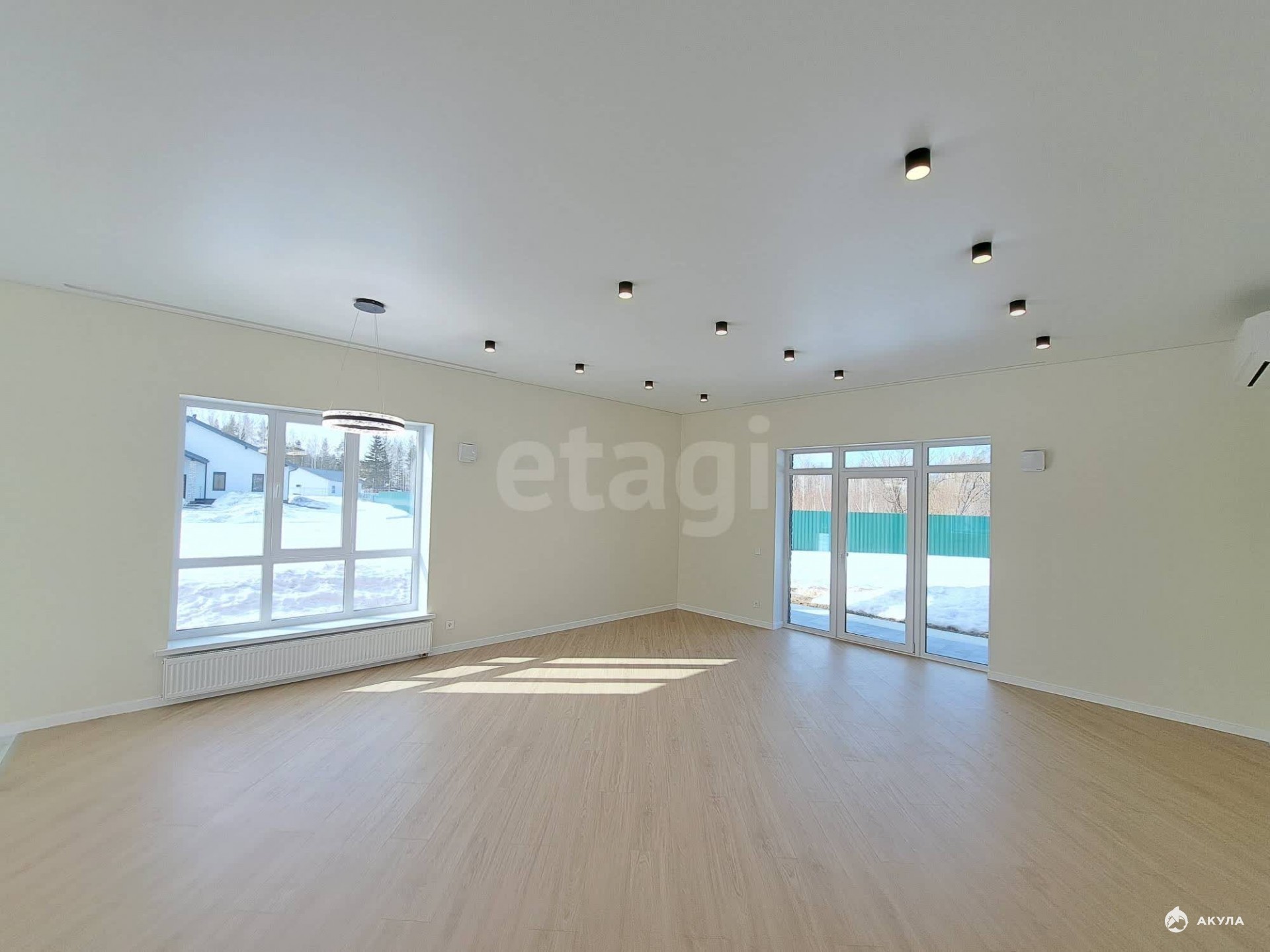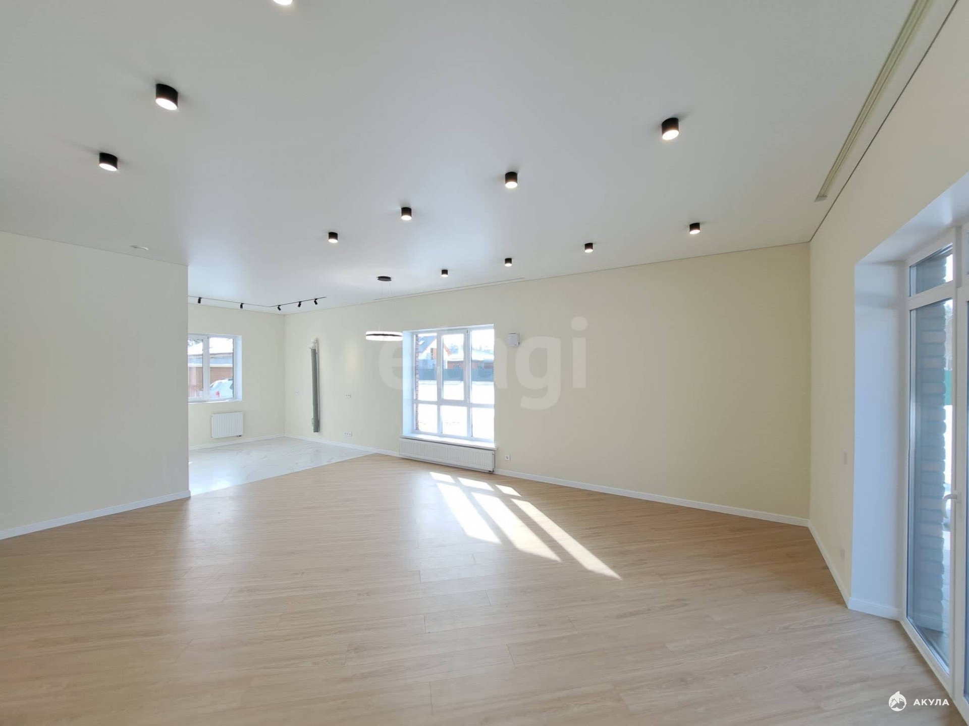 Большая кухня-гостиная с выходом на террасу, три изолированных комнаты, два санузла, котельная. Отделка под ключ.