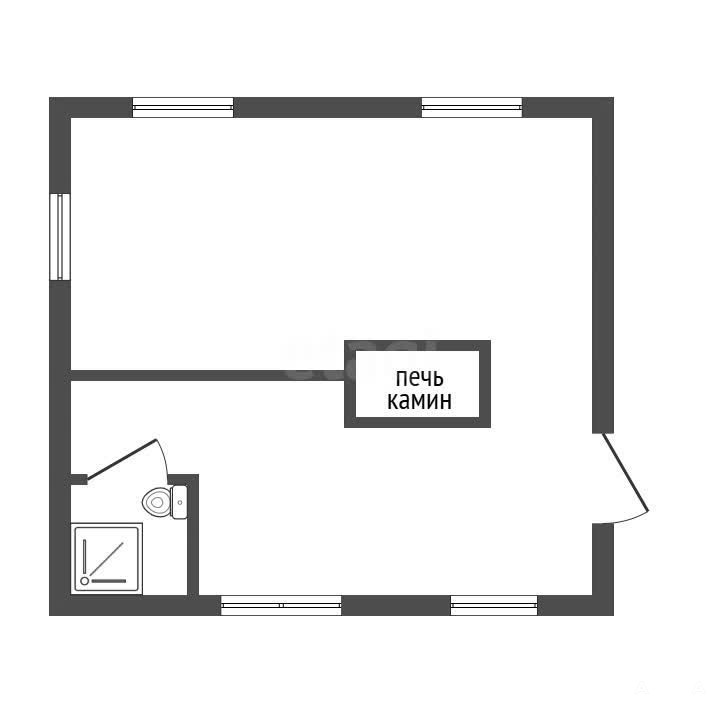 Деревенский жилой дом бревенчатый площадь 39, 8 кв.м., кухня и жилая комната, санузел с душем.
