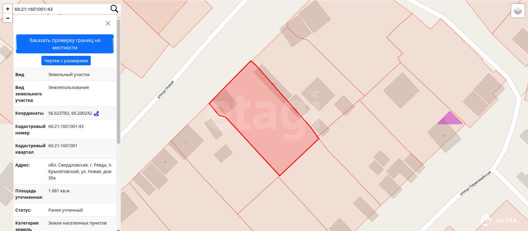 - Площадь участка