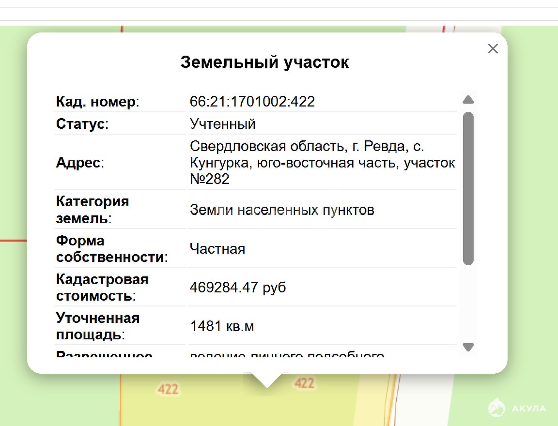 - Площадь участка