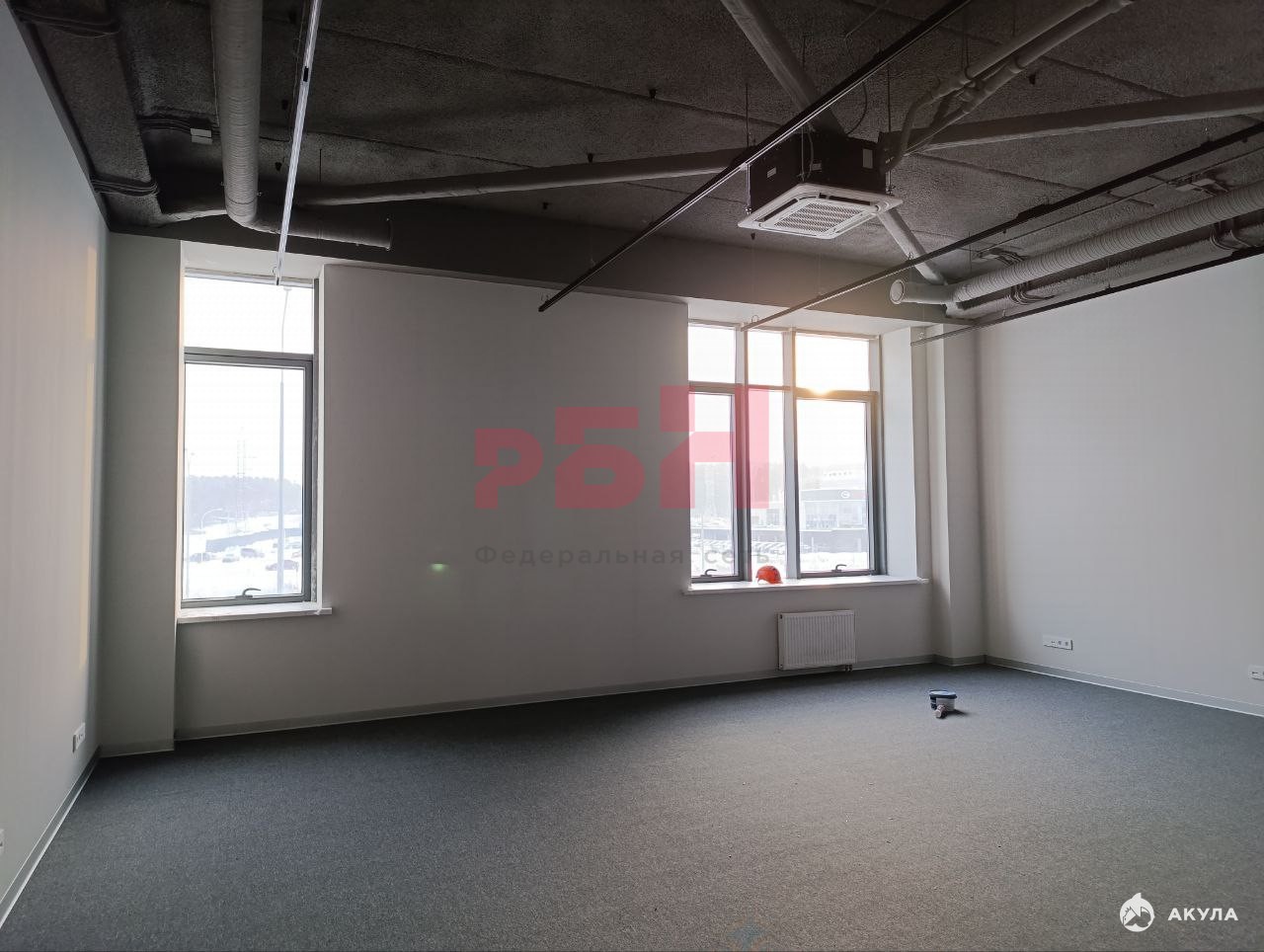 -выполнена чистовая отделка, на полу уложен ковролин, стены и потолок - окрашены;
