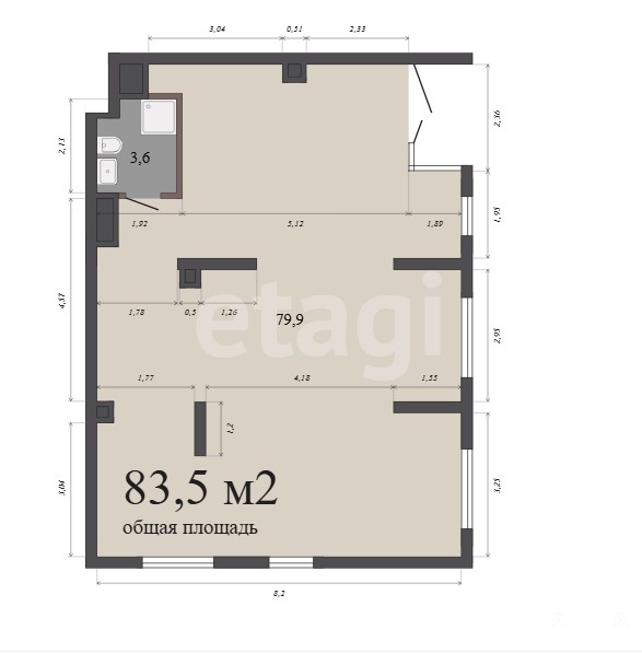 Площадь в 83, 5 м² предоставляет широкие возможности для организации розничной точки, офиса обслуживания, кафе или студии.