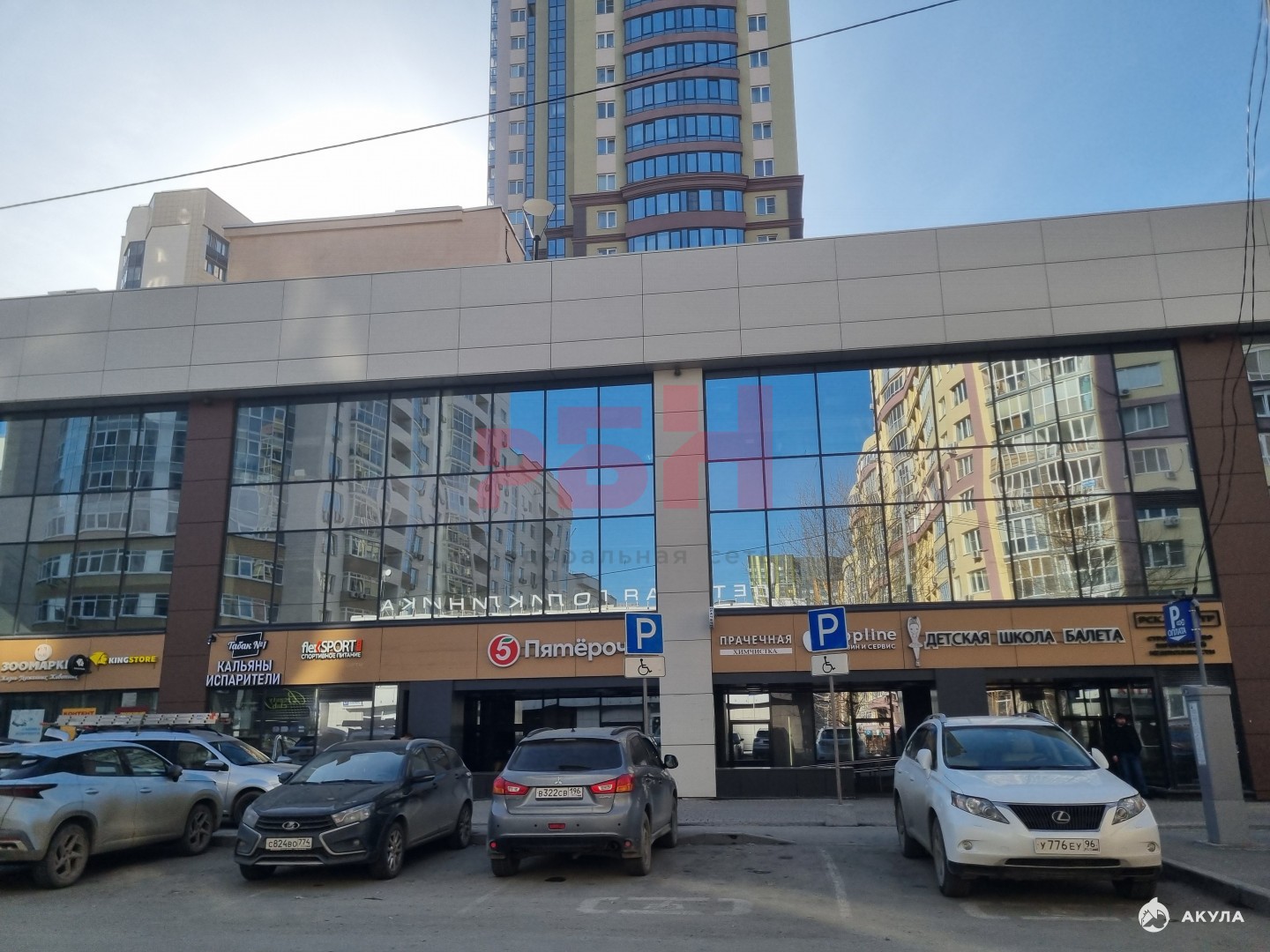 - на 1ом этаже расположены: "Пятерочка", "турагентства, салоны красоты, магазины одежды т.д. ;