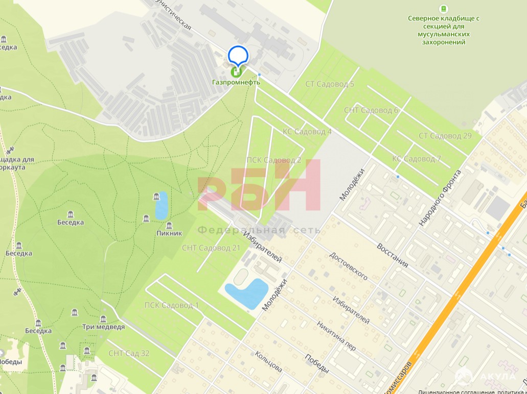 - В непосредственной близости от участка находится заправка Газпром, гаражные комплексы и проезд до садовых товариществ.