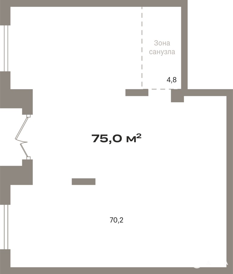 Помещение свободного назначения на 1 этаже, общая площадь 75 кв.м., без отделки. Стоимость помещения 26, 120, 000 руб., цена за кв.м 348, 266 руб.