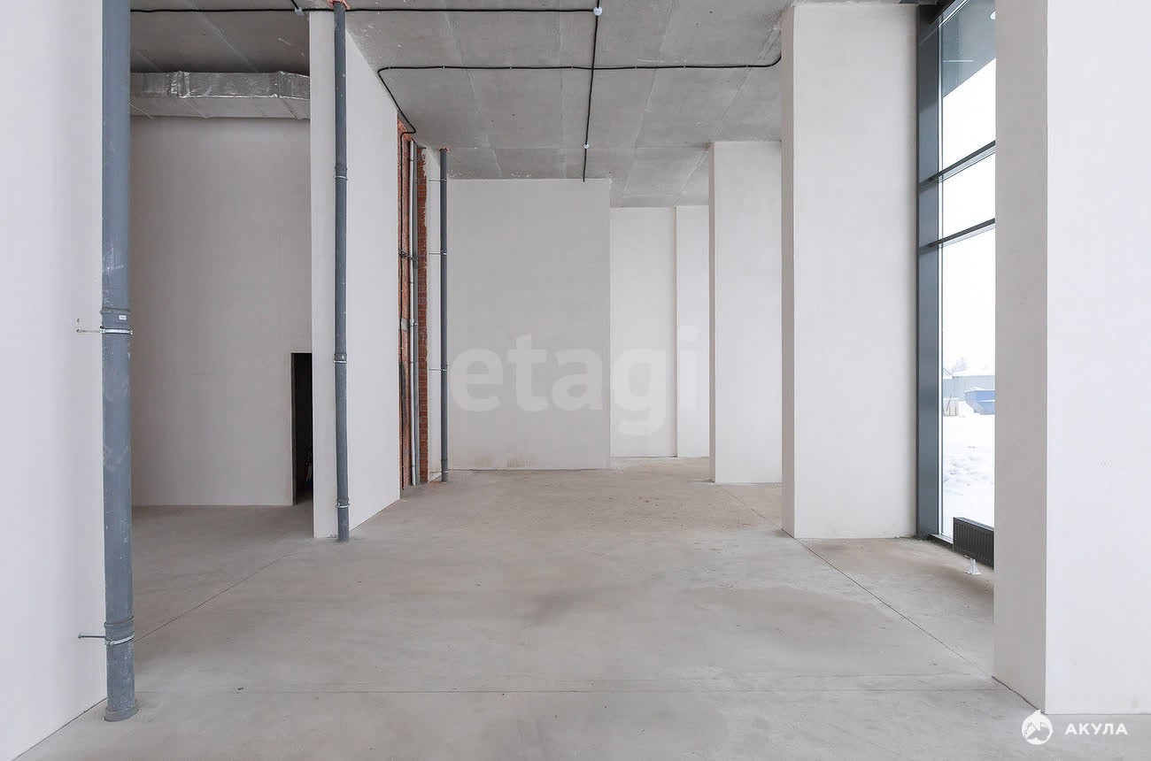 Помещение обладает высоким потолком выше 3-х метров и панорамным остеклением. Внутренняя отделка включает цементно-песчаную стяжку пола и подведенные инженерные коммуникации: водоотведение, канализацию, электричество, радиаторы отопления, приборы учета и отдельный вентиляционный канал, что позволяет быстро адаптировать пространство под любые бизнес-задачи.