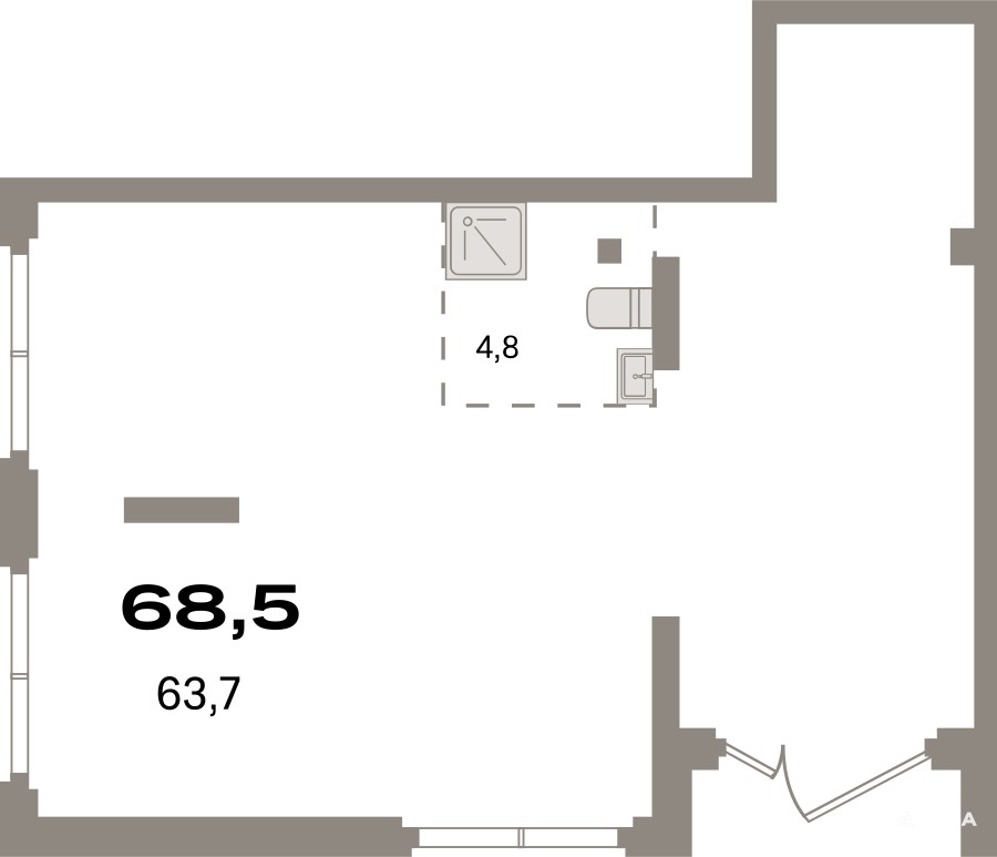 Помещение свободного назначения на 1 этаже, общая площадь 68.5 кв.м., без отделки. Стоимость помещения 14, 000, 000 руб., цена за кв.м 204, 379 руб.