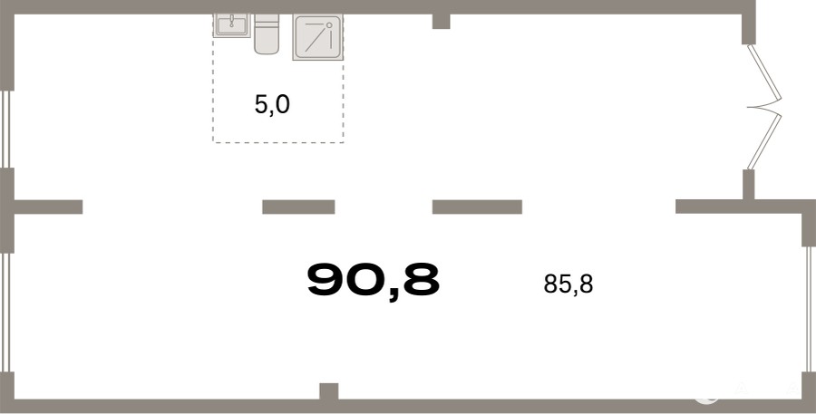Помещение свободного назначения на 1 этаже, общая площадь 90.8 кв.м., без отделки. Стоимость помещения 19, 780, 000 руб., цена за кв.м 217, 841 руб.