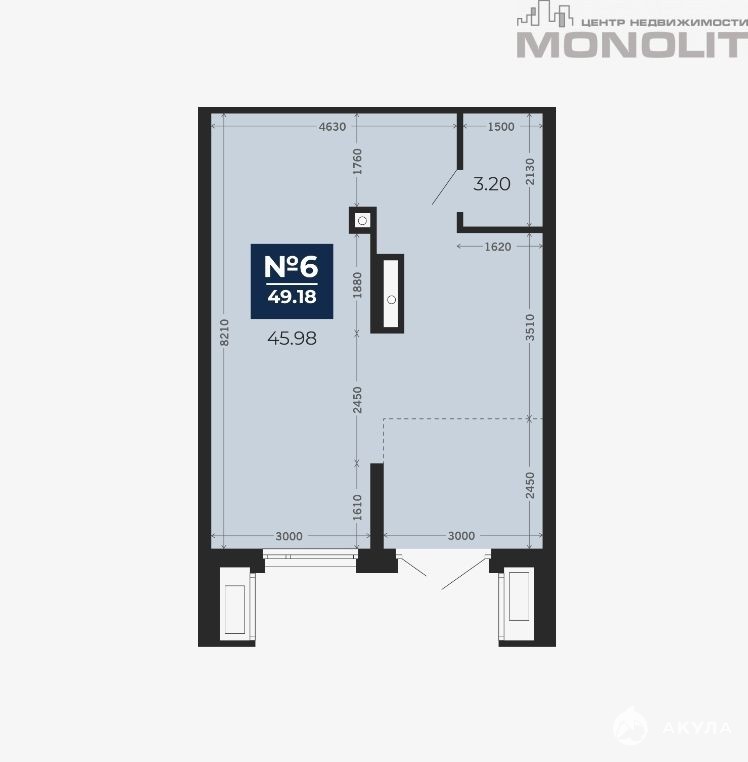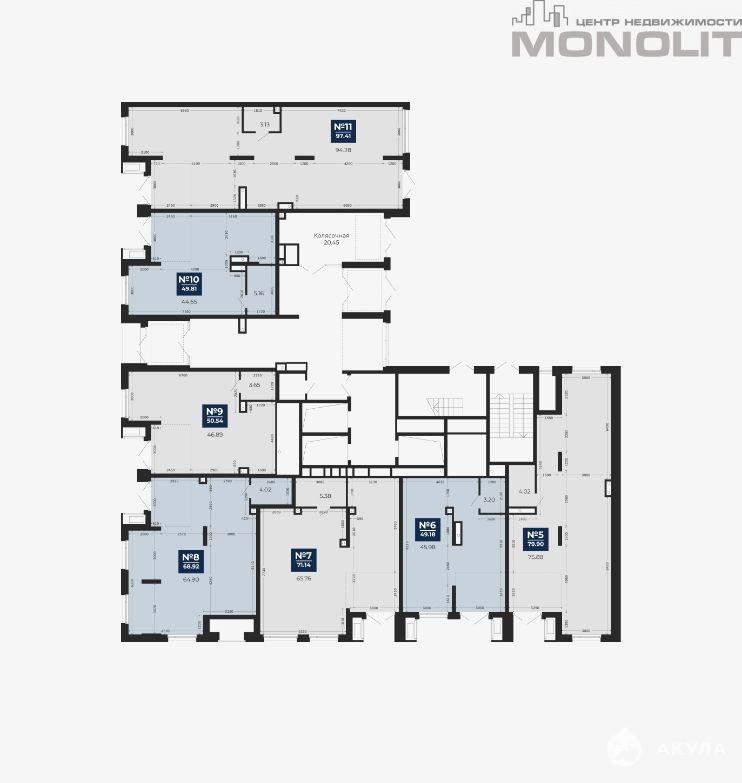 В продаже также другие варианты помещений в этом комплексе от 40 метров, есть возможность объединения.