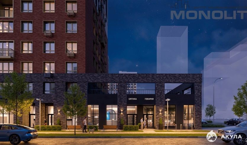 Дом комфорт-класса. Все помещения расположены в едином стилобате, объединяющем 5 разноэтажных домов от 10 до 30 этажей. Вход в помещение с ул.Гризодубовой.