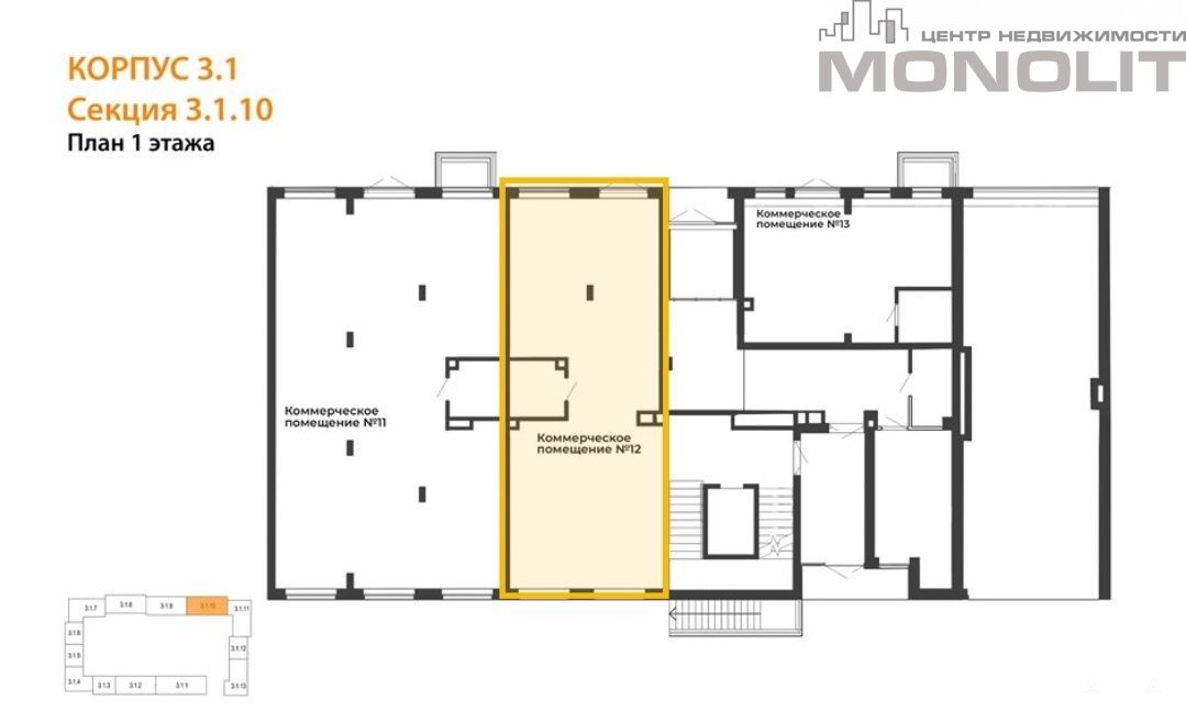 В продаже есть другие варианты помещений в этом доме, есть возможность объединения.
