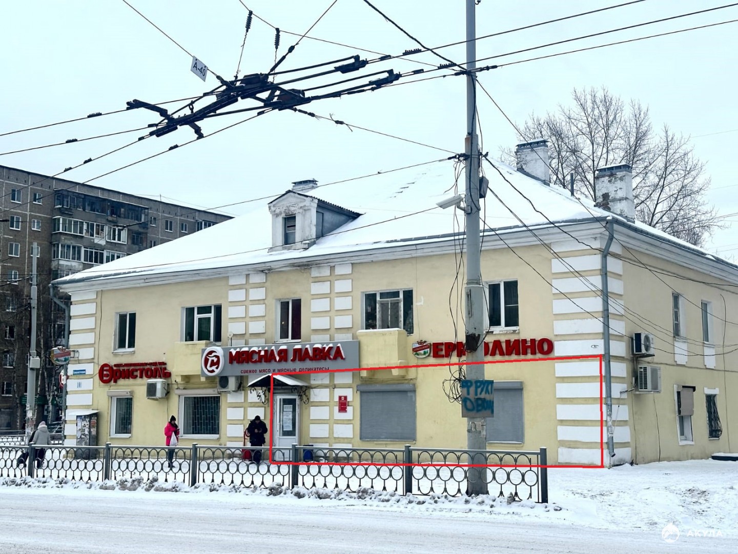 Помещение расположено на углу улиц Коммунистическая и Бакинских Комиссаров