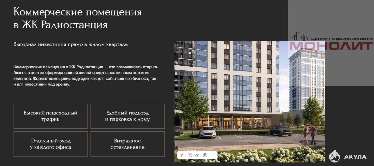 Предлагается в покупку торговое помещение, расположенное в ЖК Радиостанция, расположенном в парке-квартале на Уралмаше.