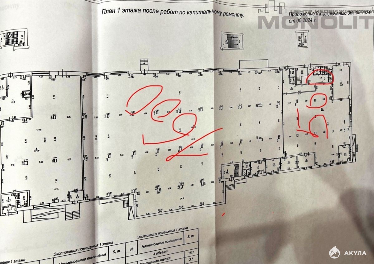 Ранее располагался продуктовый магазин, возможно рассмотреть разные варианты площадей под различные виды деятельности от 500 до 1700 кв.м на первом и втором этаже.