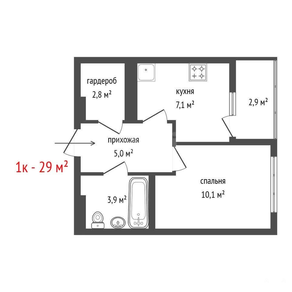 Площадь: 29 кв.м., грамотная и современная планировка.